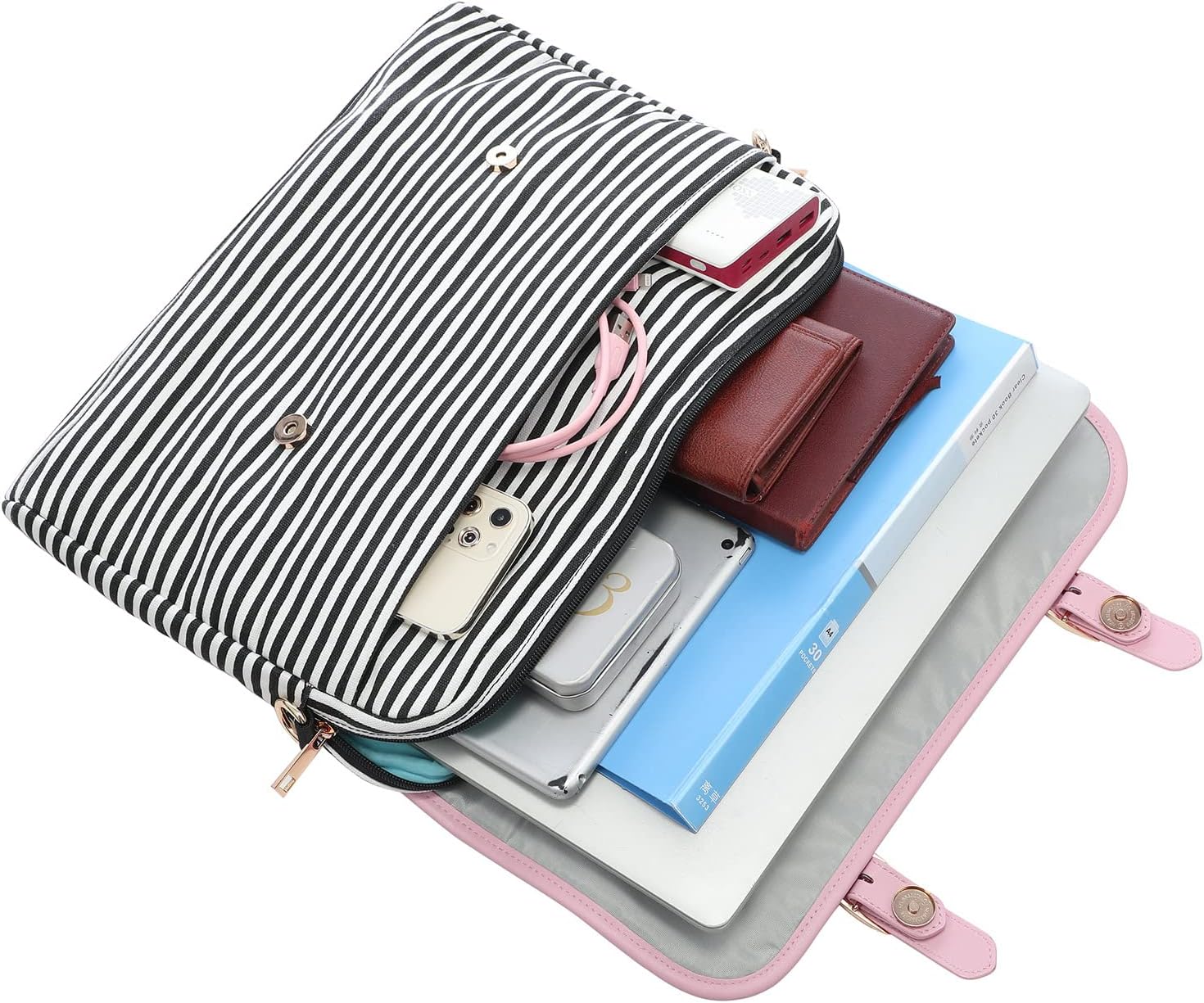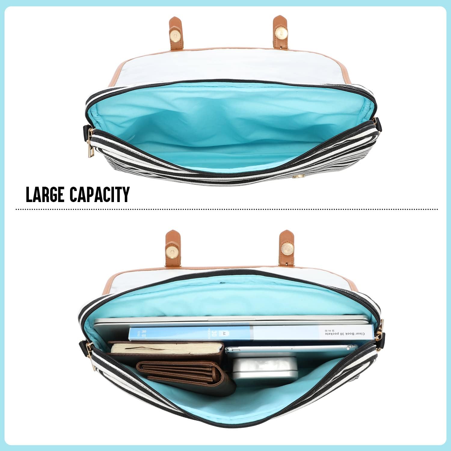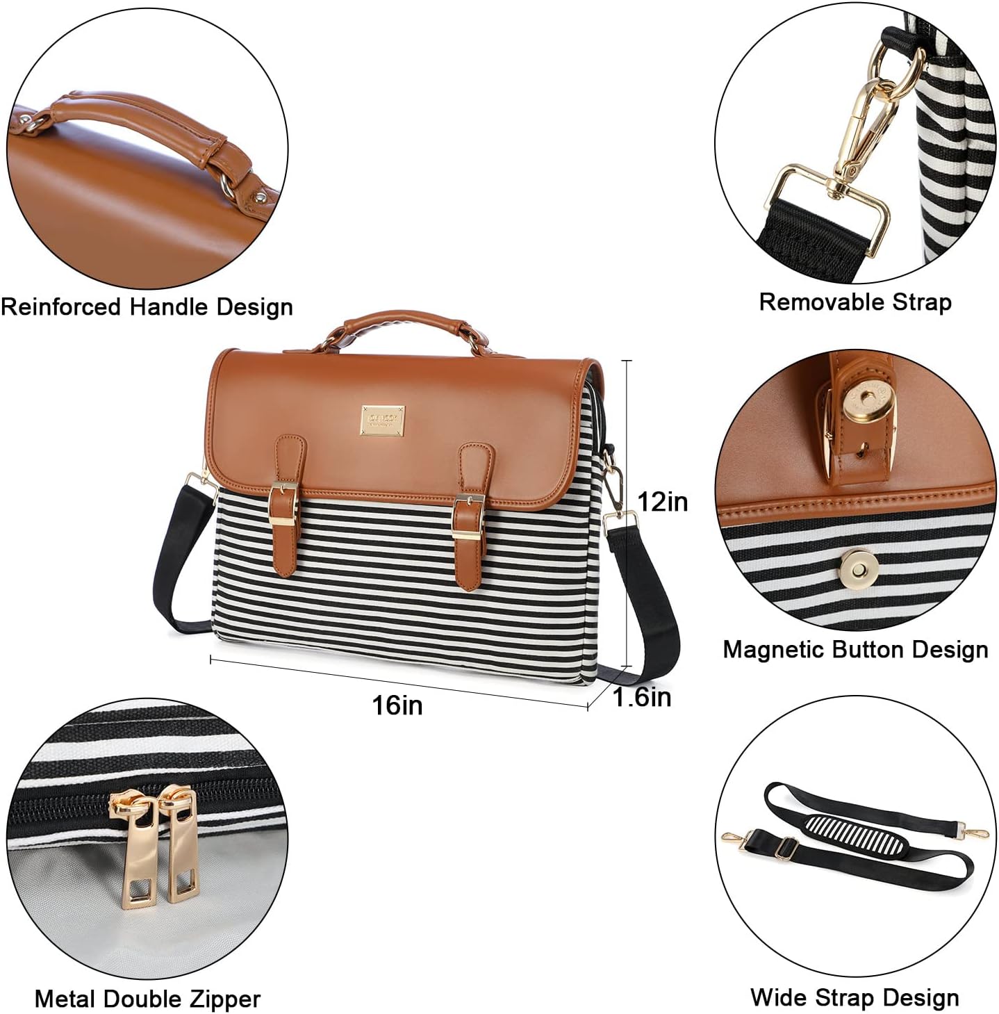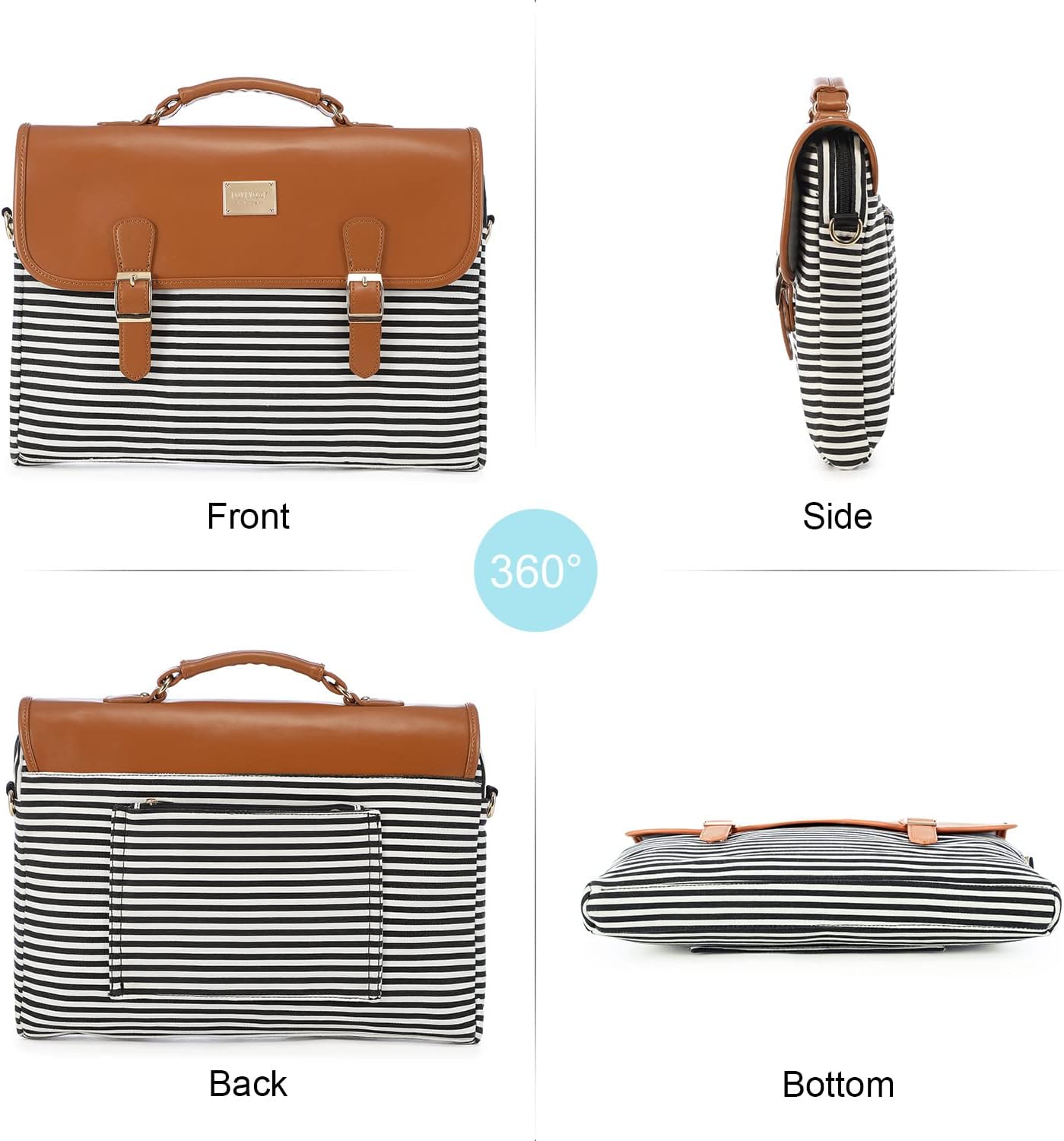 LOVEVOOK Leather Messenger Laptop Bag 15.6 Inch - Brown & Stripes