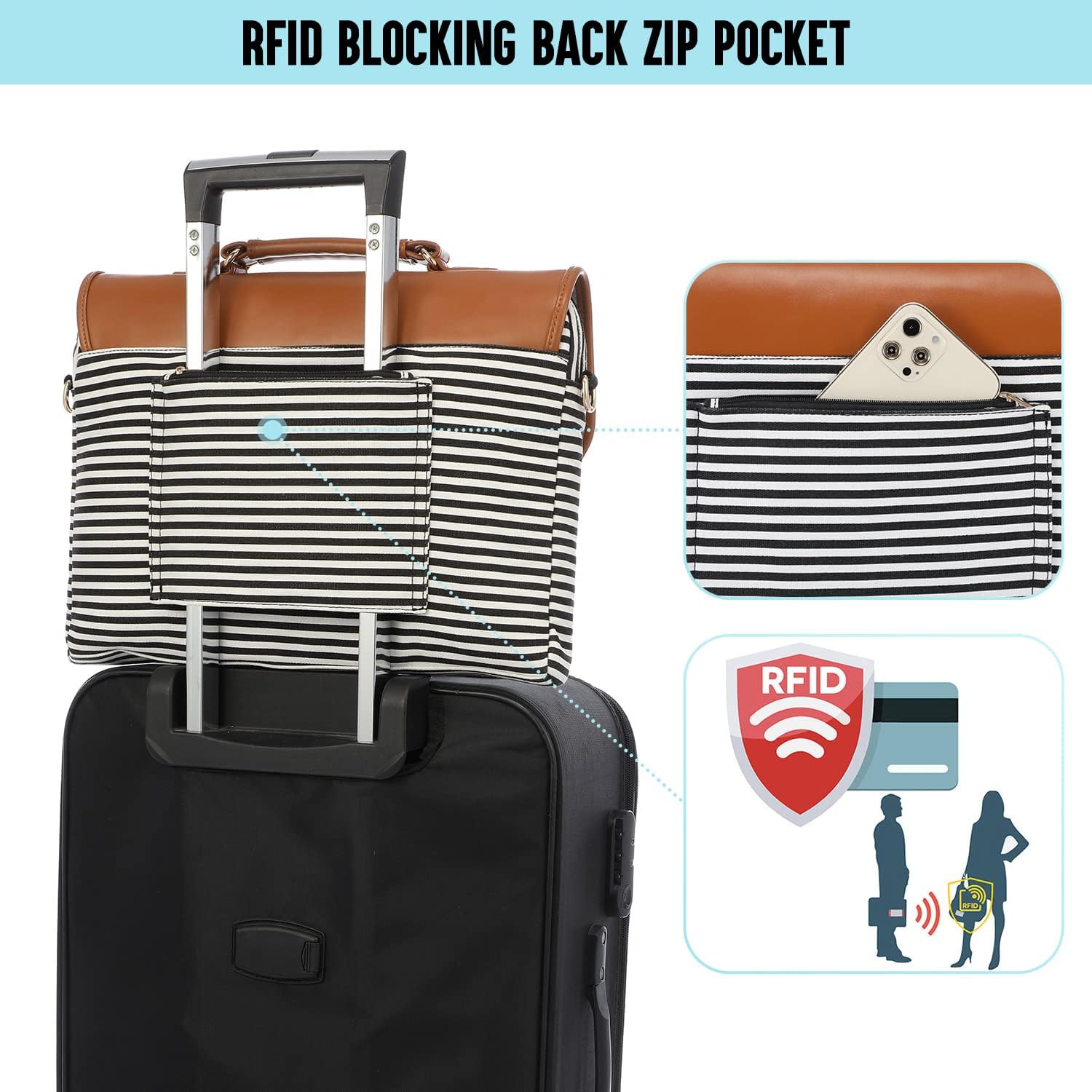 · Carry laptop safe and easy, built 1 soft padded compartment,1 big pocket and 1 zip pocket with RFID Blocking function