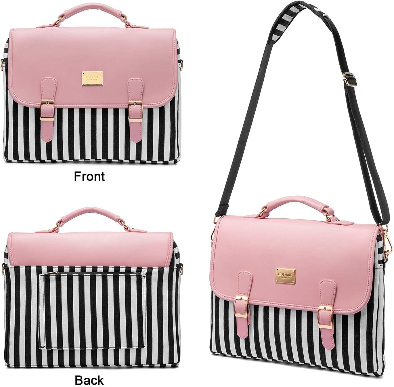 LOVEVOOK Leather Messenger Laptop Bag 14.0 Inch - Pink & Striped