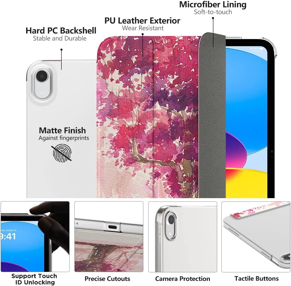 covered with translucent PC hard back shell, this iPad 10th case protects your