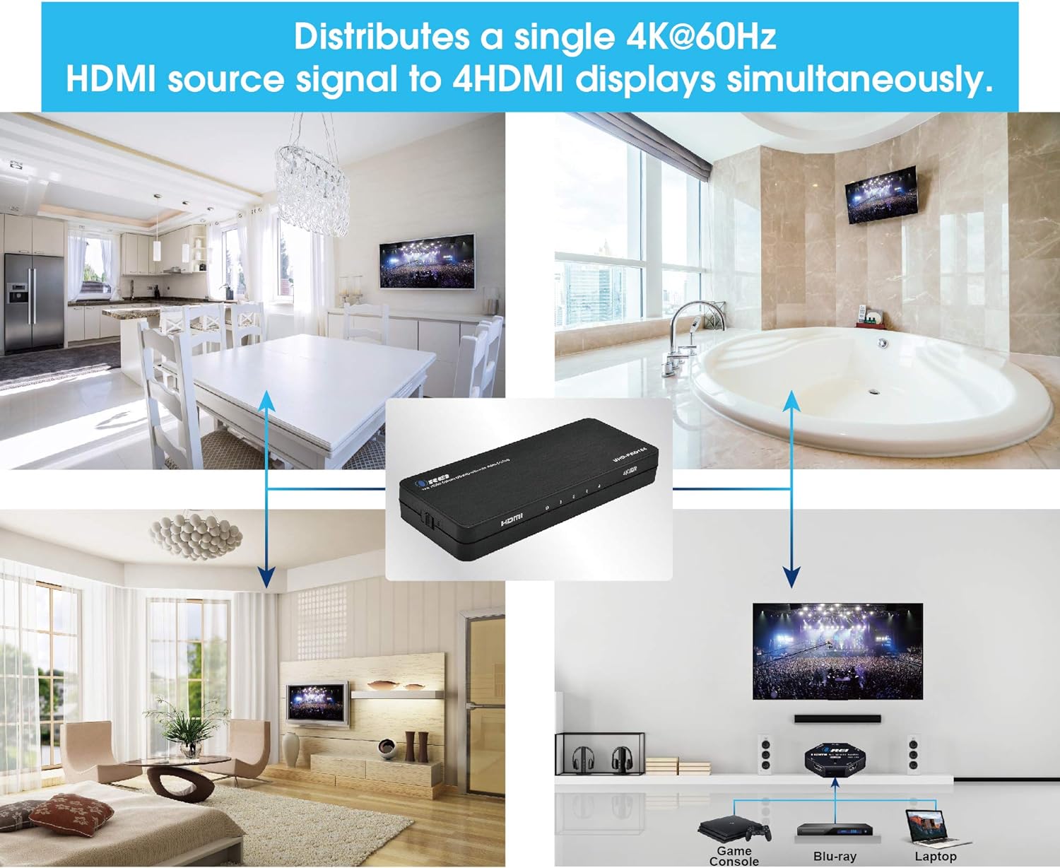 to 4 HD Display - Supports Version 2. 0 - Splitting one HDMI input signal into