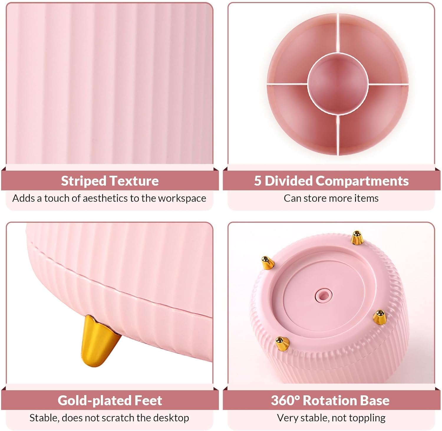 SKYDUE 360 Degree Rotating Desk Organizer Pencil & Pen Holder - 5 Slots - Pink