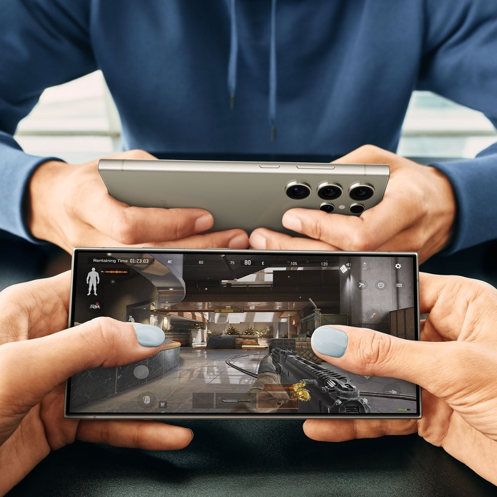With the new, sturdy titanium frame and the ultra strong Gorilla ® Glass Victus ® 2 screen, Galaxy S24 Ultra keeps you doing what you do best, because you know your phone is up to the challenge.
