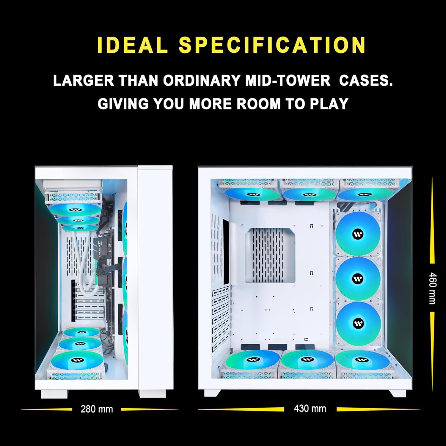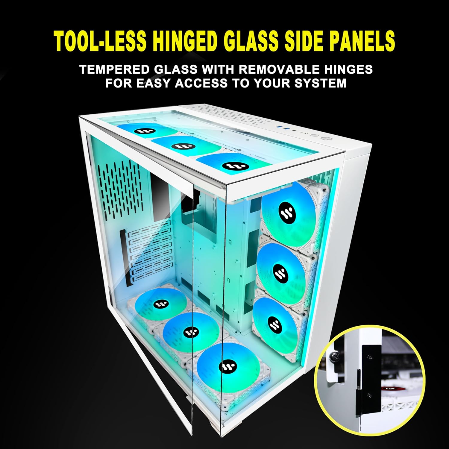 Kediers 9 ARGB Fans Computer ATX, Mid Tower Gaming Case - Tempered Glass Side Panel Door