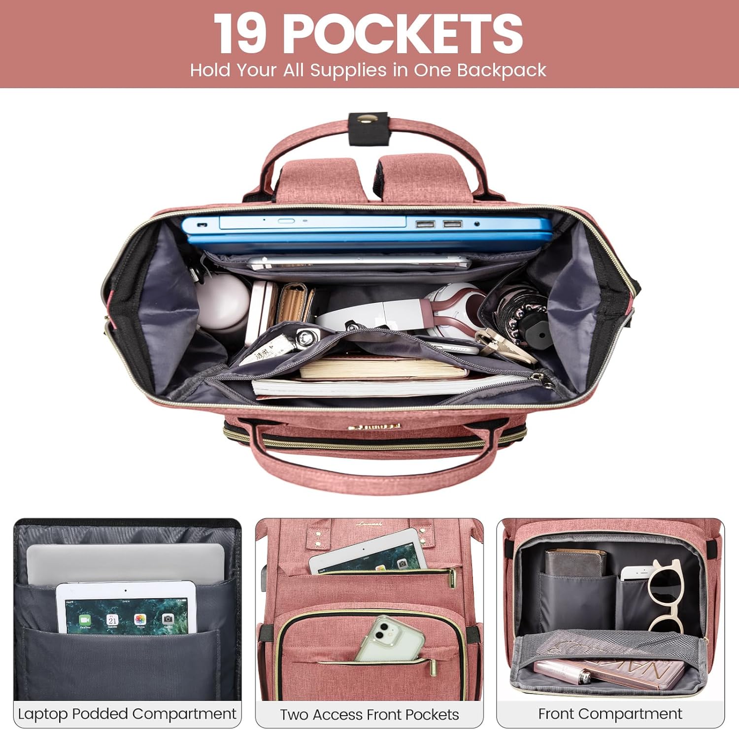 Wide Open Teacher Nurse Backpack Work Bags: Reinforced edges and steel frame of the main compartment keep