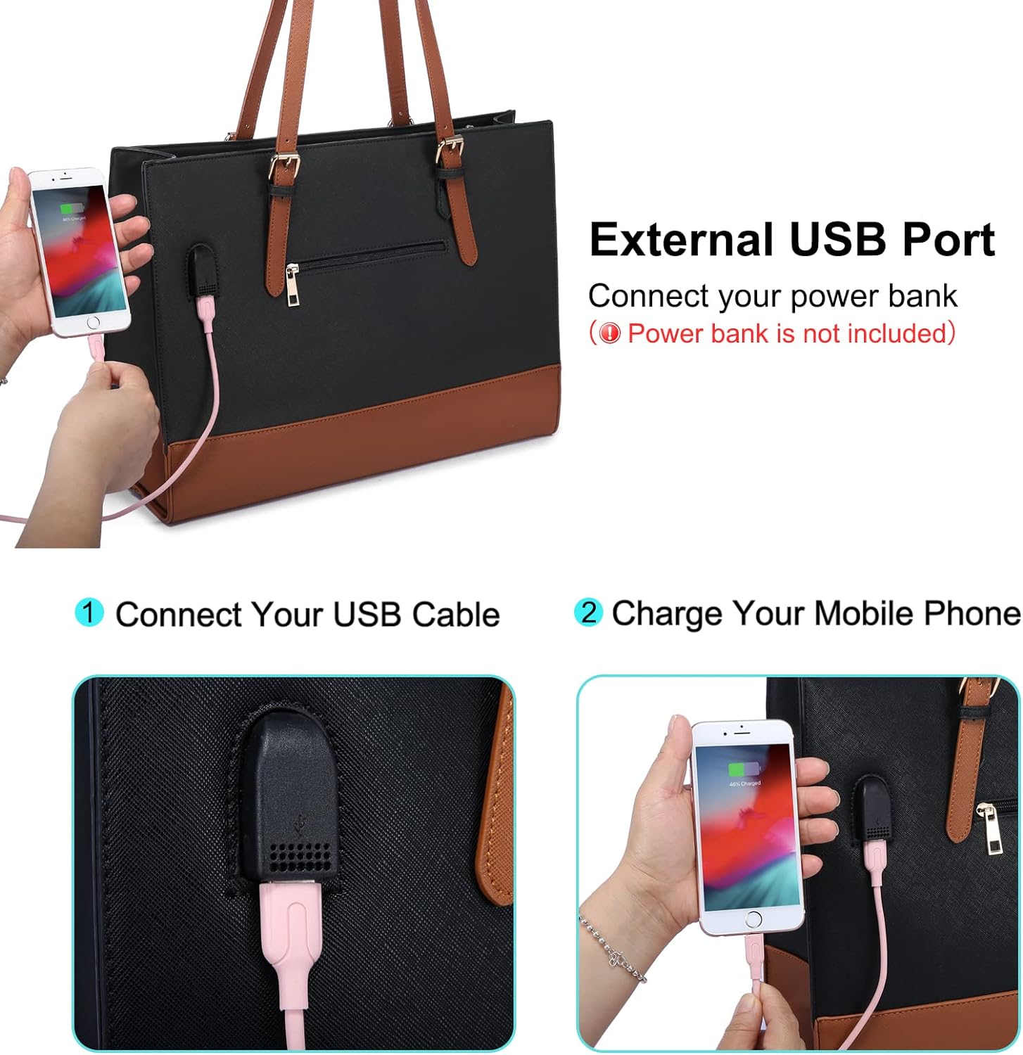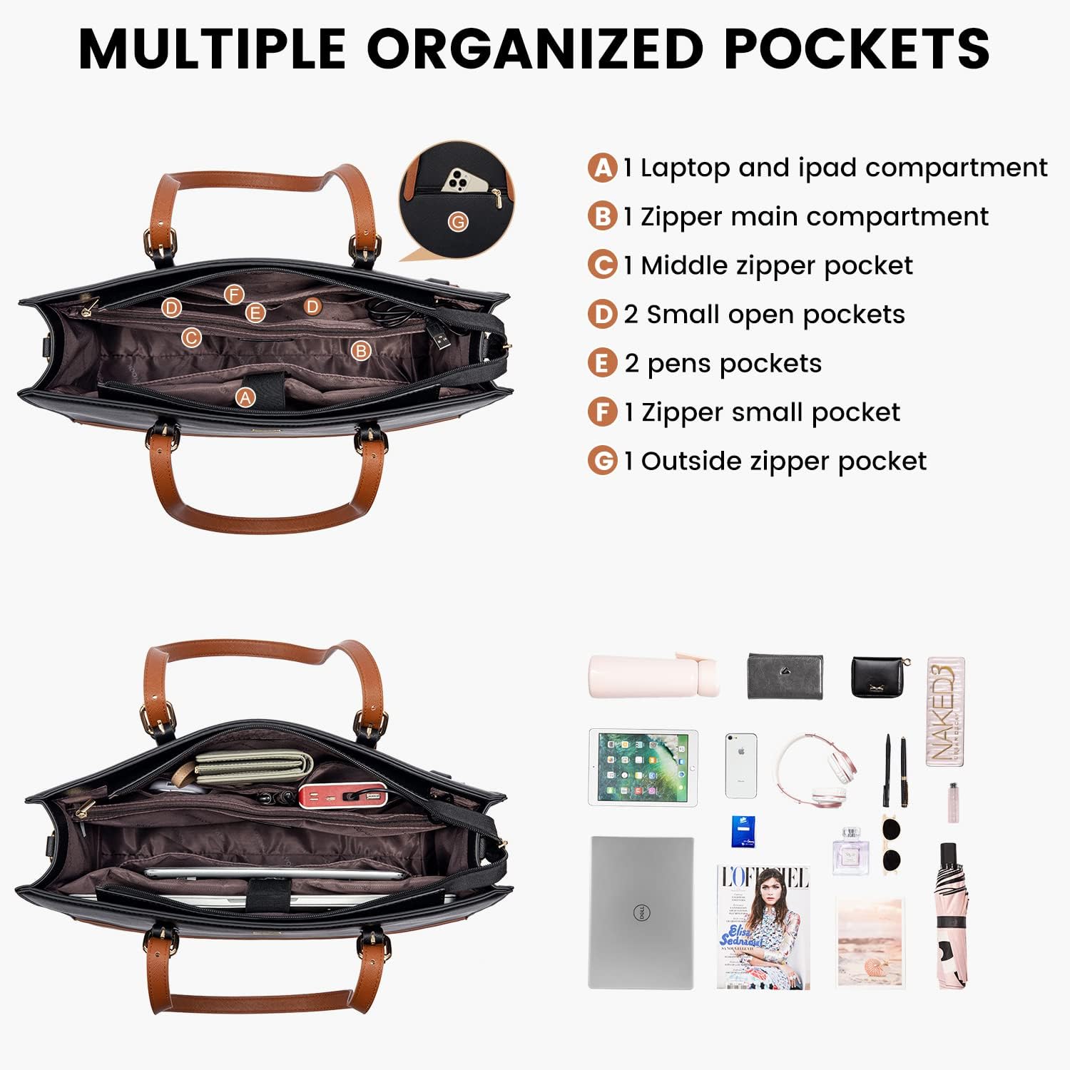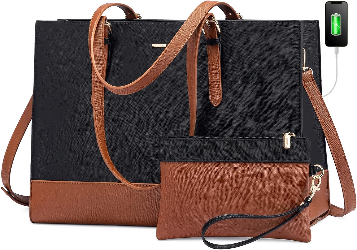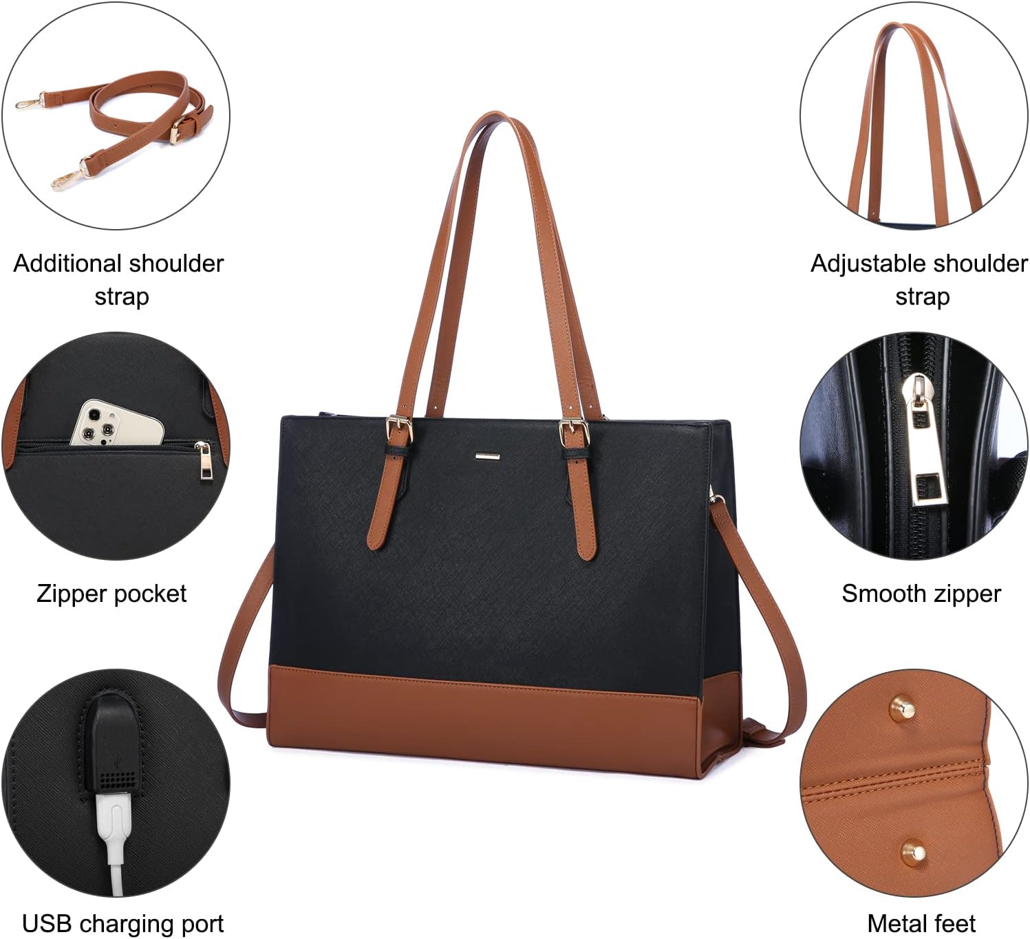 LOVEVOOK Laptop Tote Bag 15.6 Inch - Black & Brown