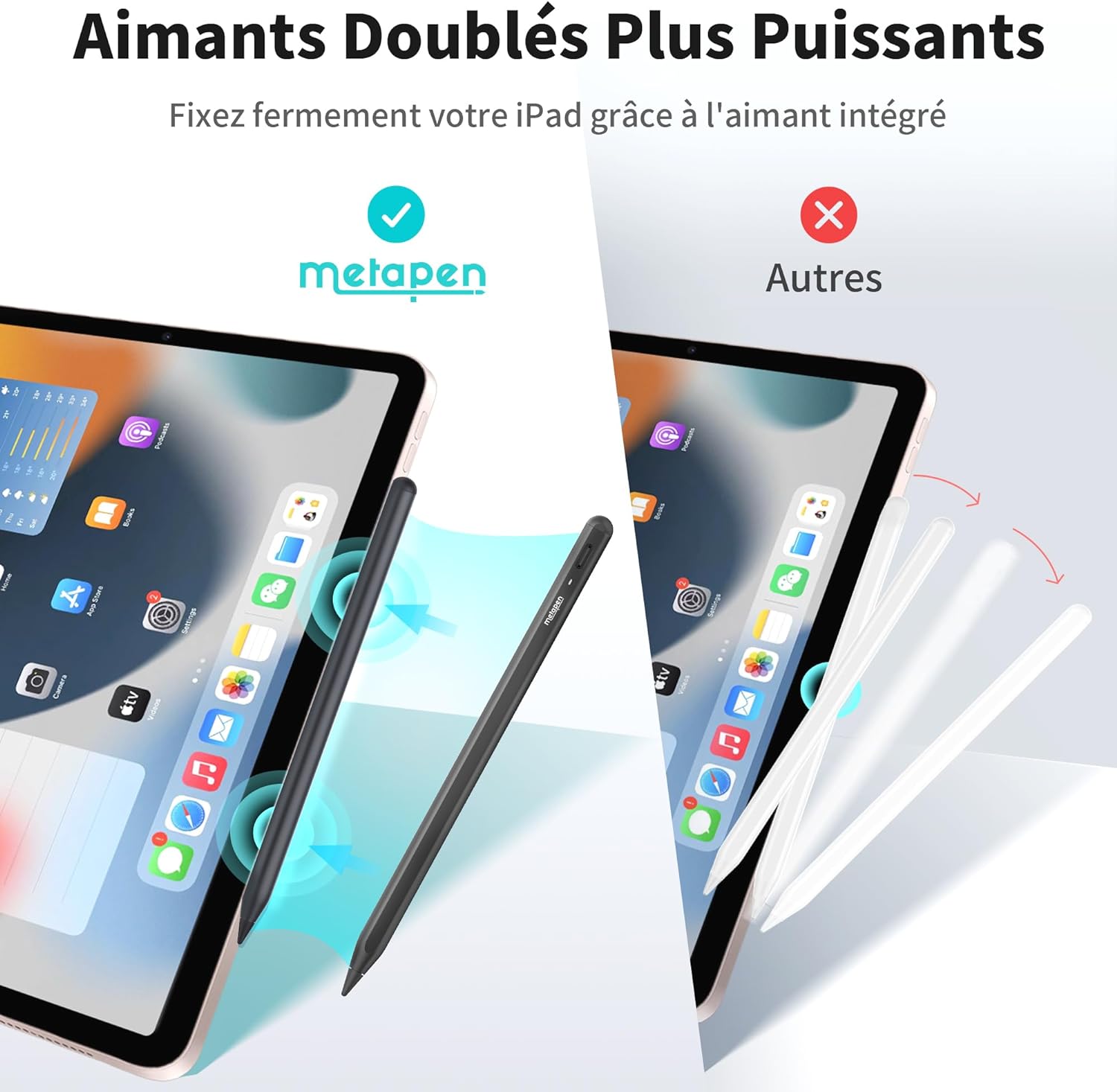 Metapen A8 Quick Charge Stylus Pen - Palm Reject, Tilt Detection - Black