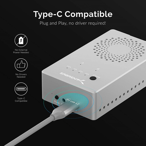 Sabrent Tool-Free USB Type-C Dual Docking Station for PCIe NVMe M.2 SSD Enclosure