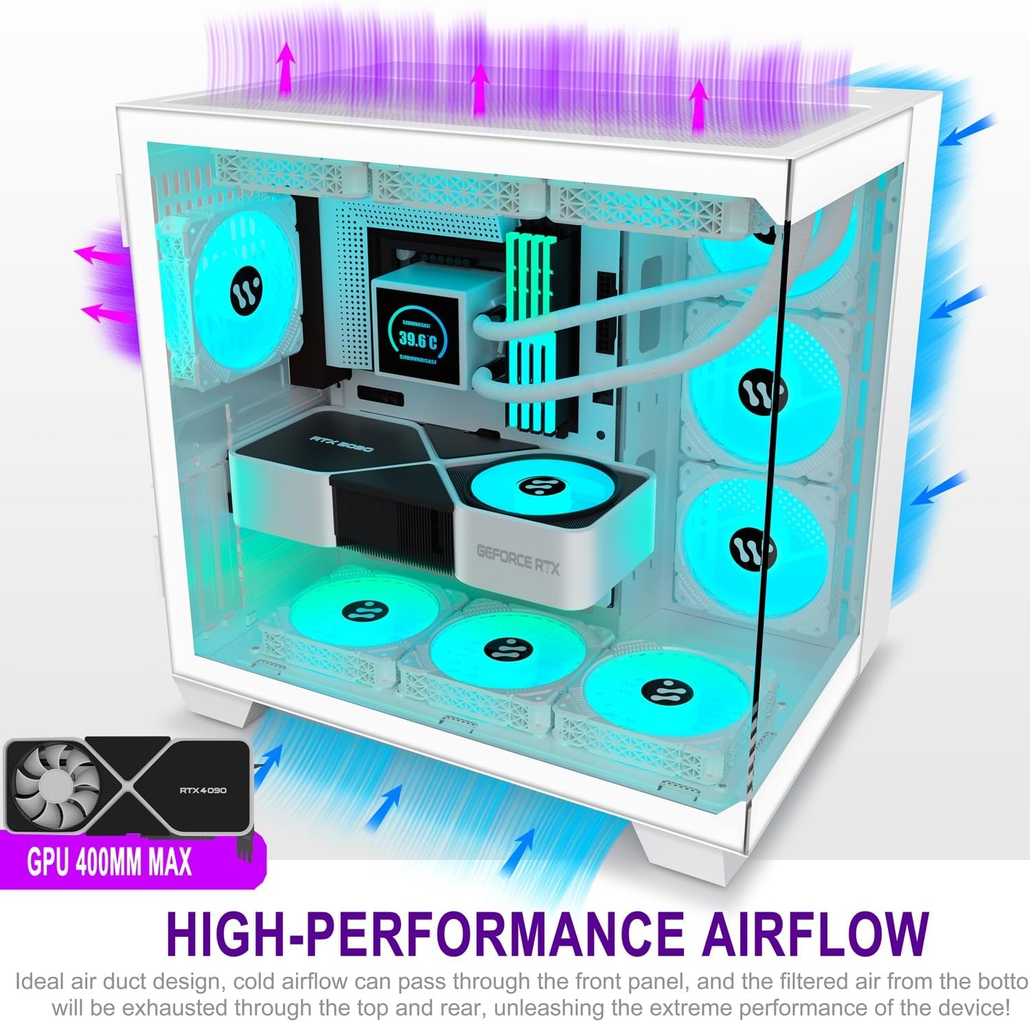 Kediers ATX Full View Tempered Glass Mid Tower Computer Case - C690 - 6 Pre-Installed 6 PMW ARGB Fans - White