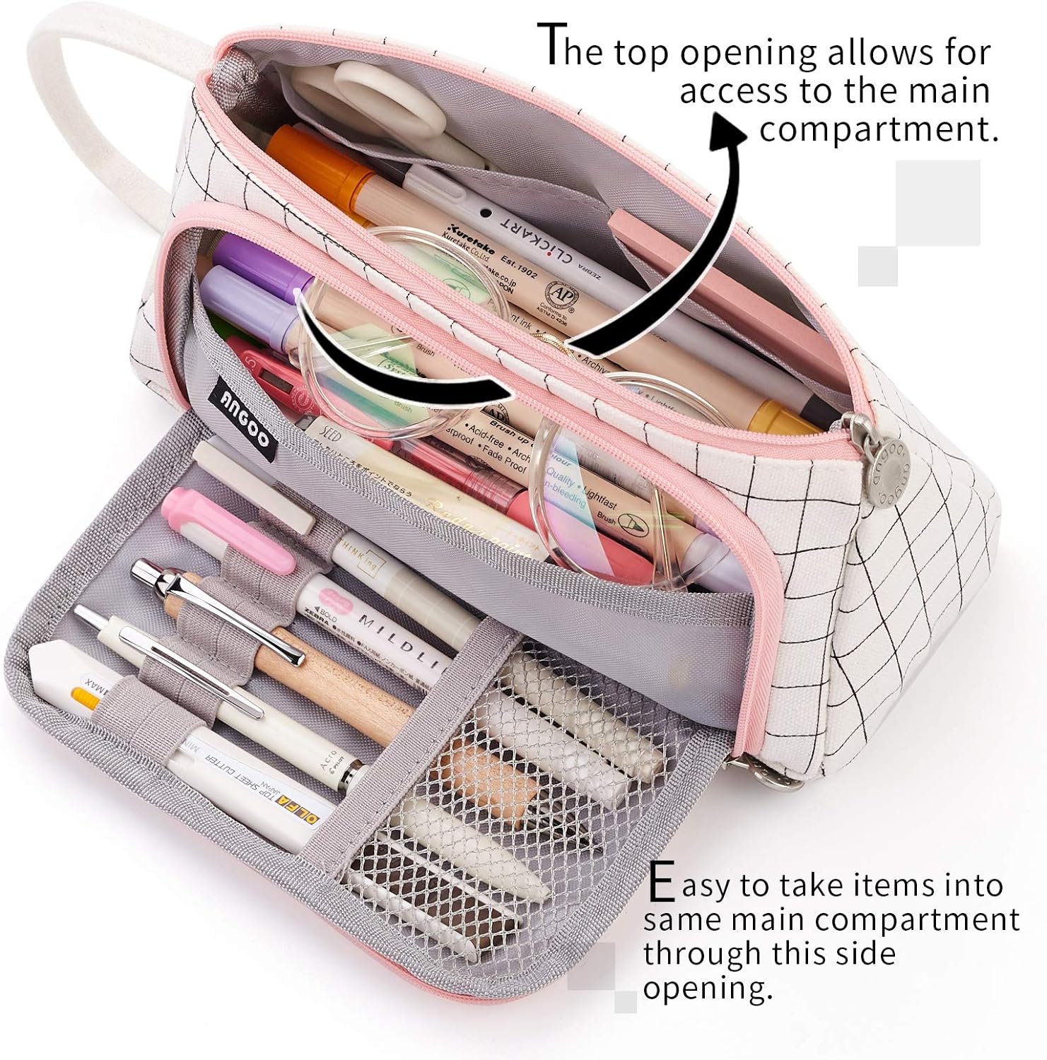 Easthill Big Capacity Pens/Pencil Case - White Plaid