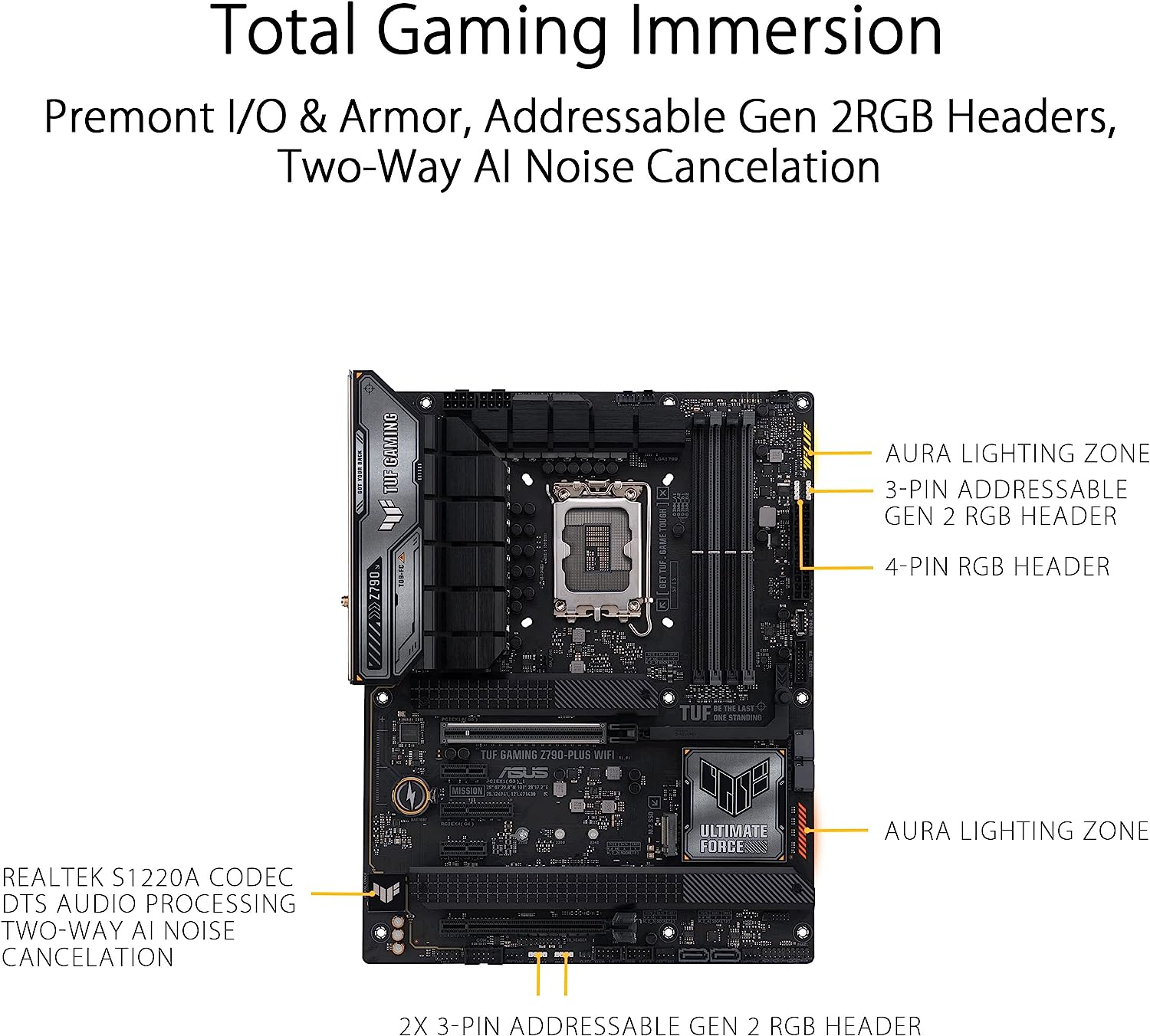 - Immersive Gaming Audio and AI Noise Cancellation: The Realtek S1200A codec offers pristine audio quality to draw you deeper into the game action or to enhance your favorite music tracks or videos.Communicate clearly with ASUS AI Noise Canceling Mic technology.
