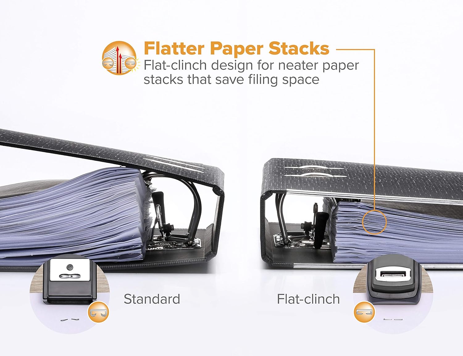 clinch stapling for flat stacks and reduced file space with Fast Load