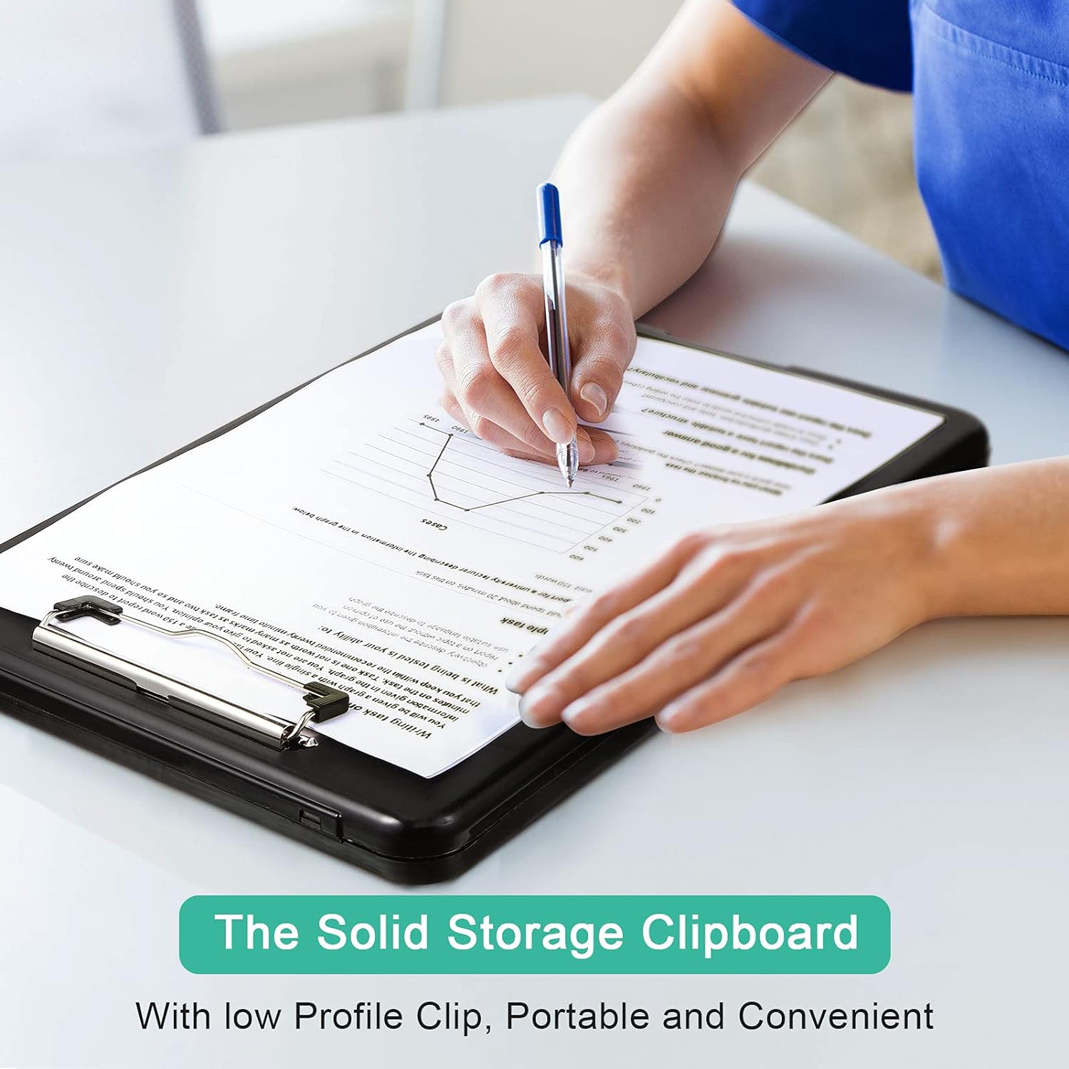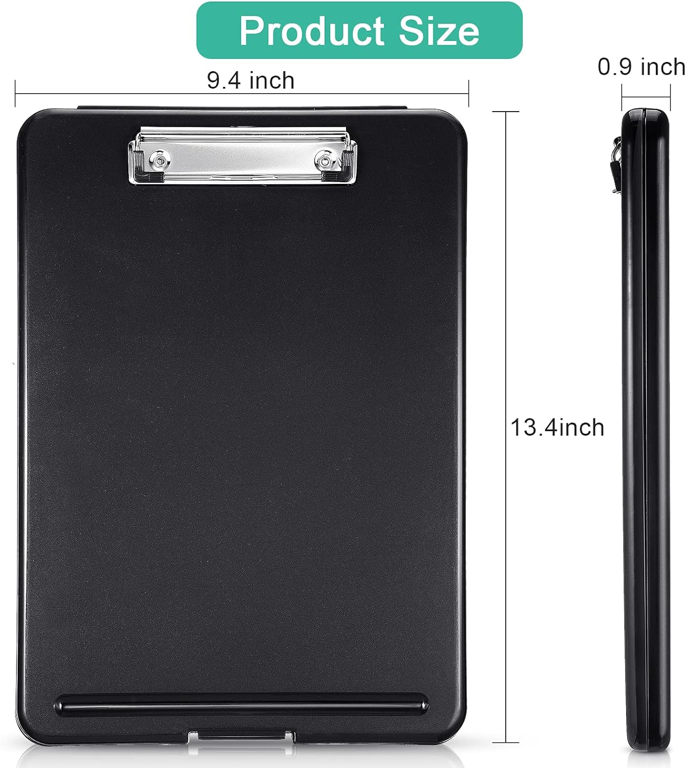Clipboard with Plastic Storage Foldable Clip - Letter Size 9.5 x 13.5 Inch - Black