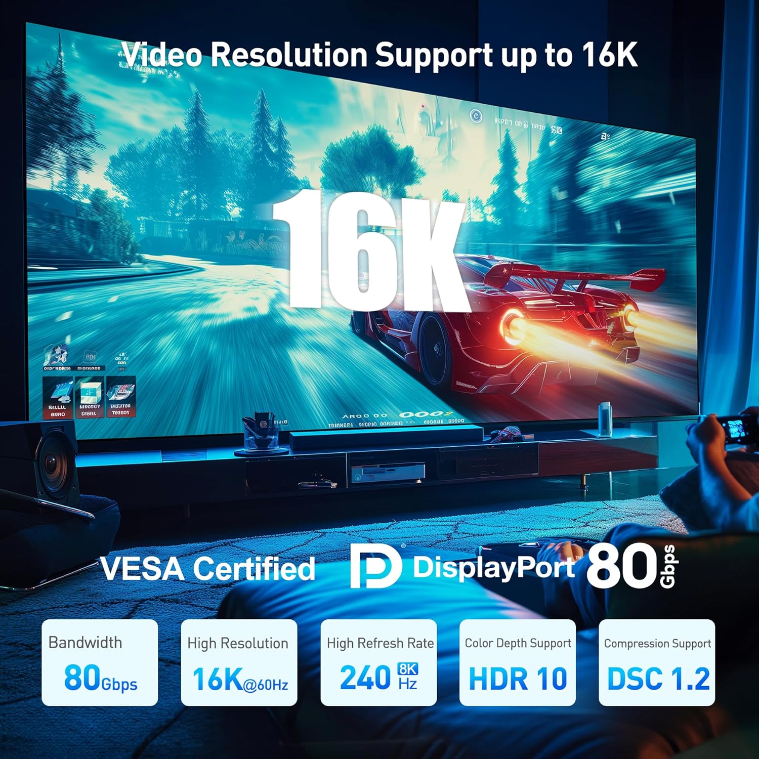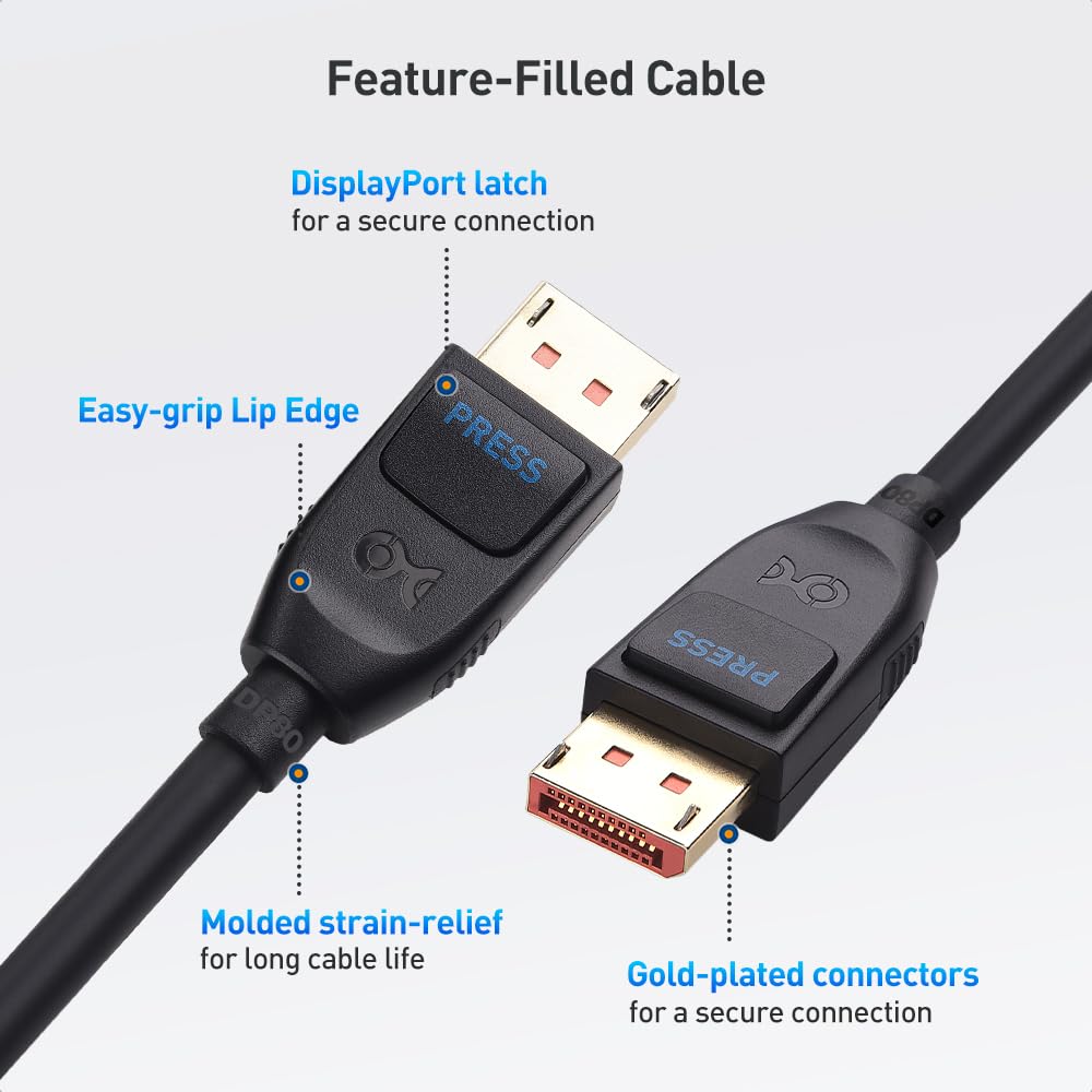 Latest DP 2.1 Features: Certified DP 2.1 cable supports the latest