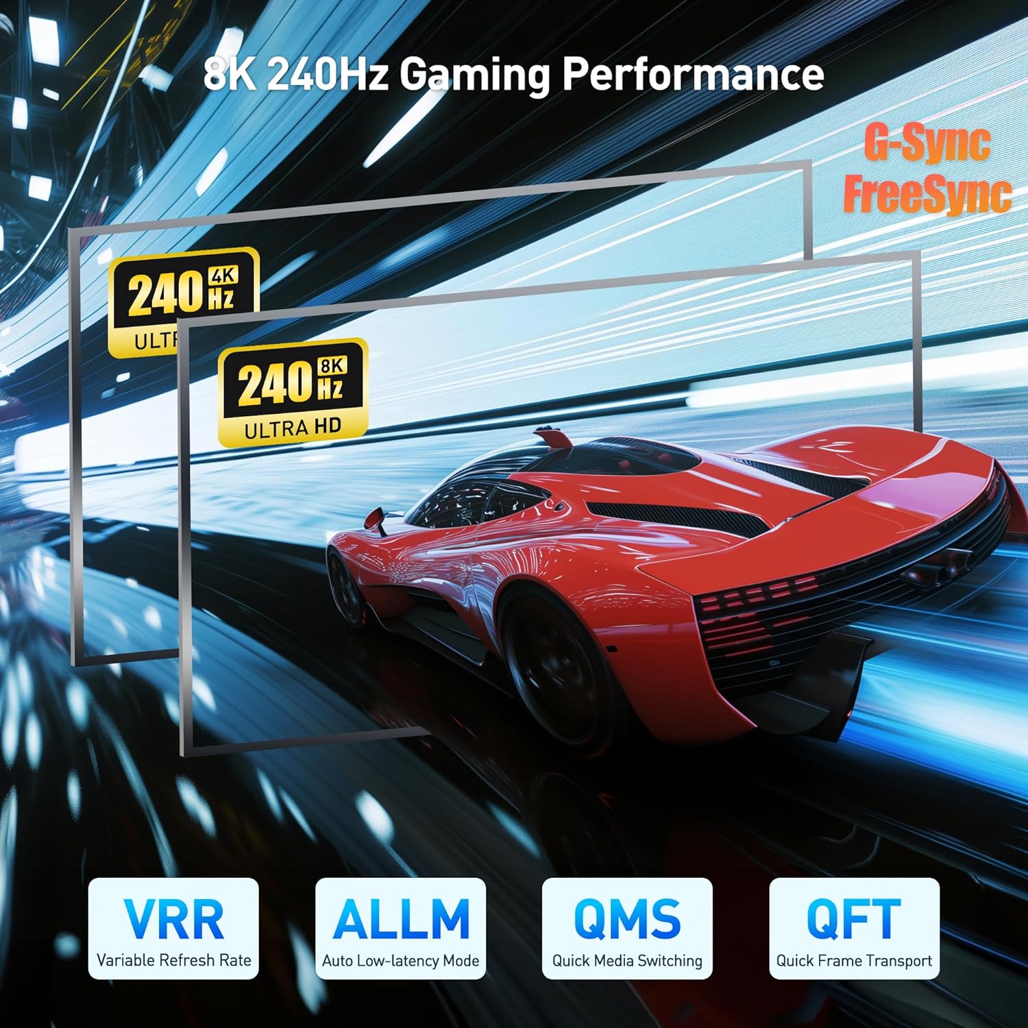 80Gbps data transmission for 16K 60Hz, 8K 240Hz or 4K 240Hz video with
