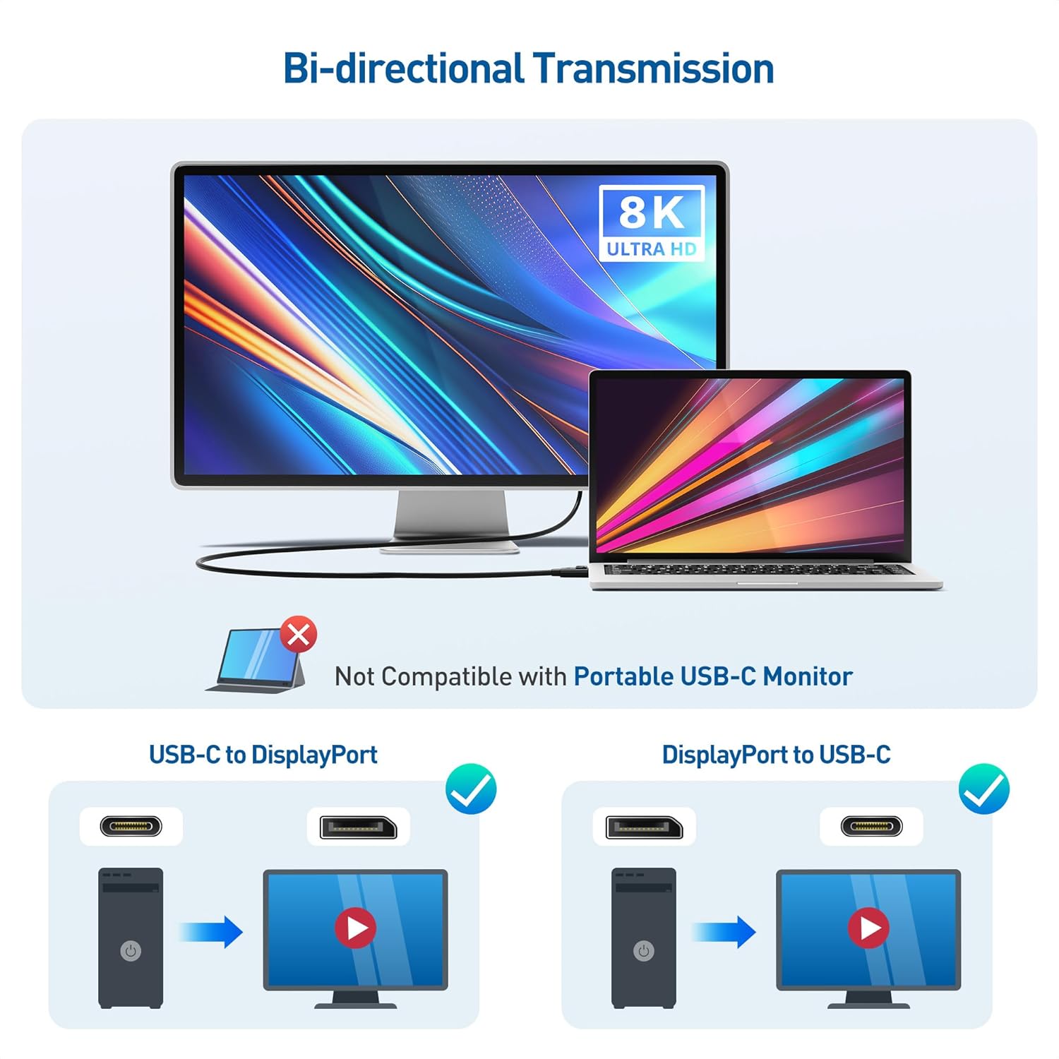 Connectivity: This USB-C to DisplayPort 1.4 cable ensures a direct