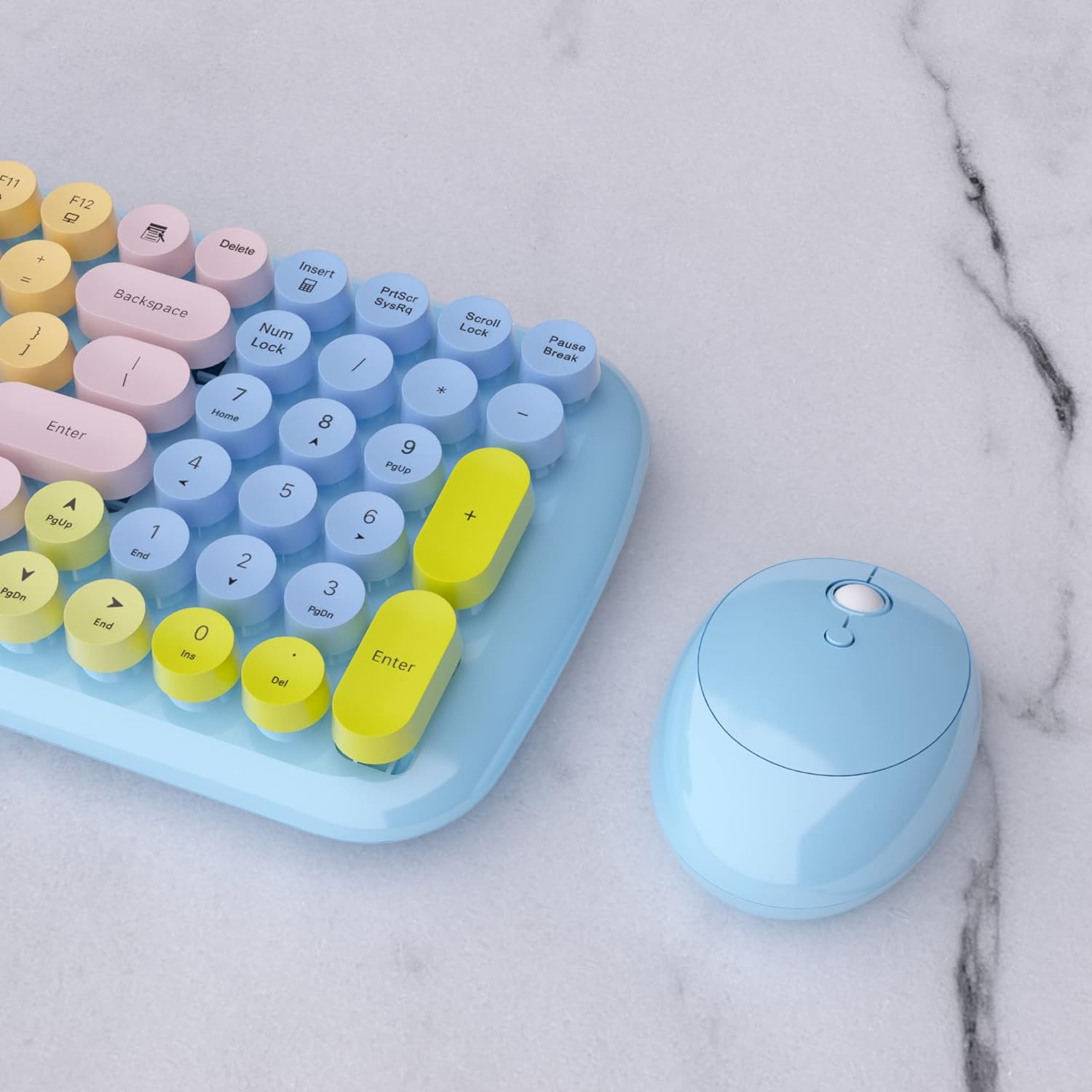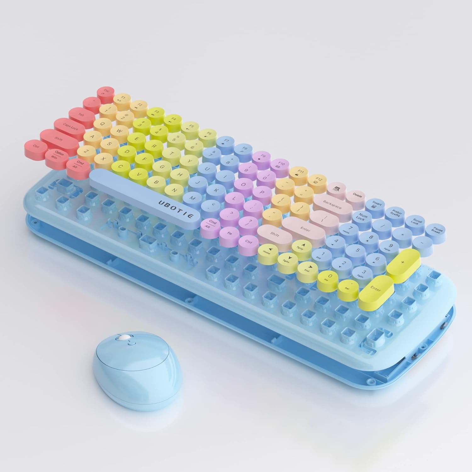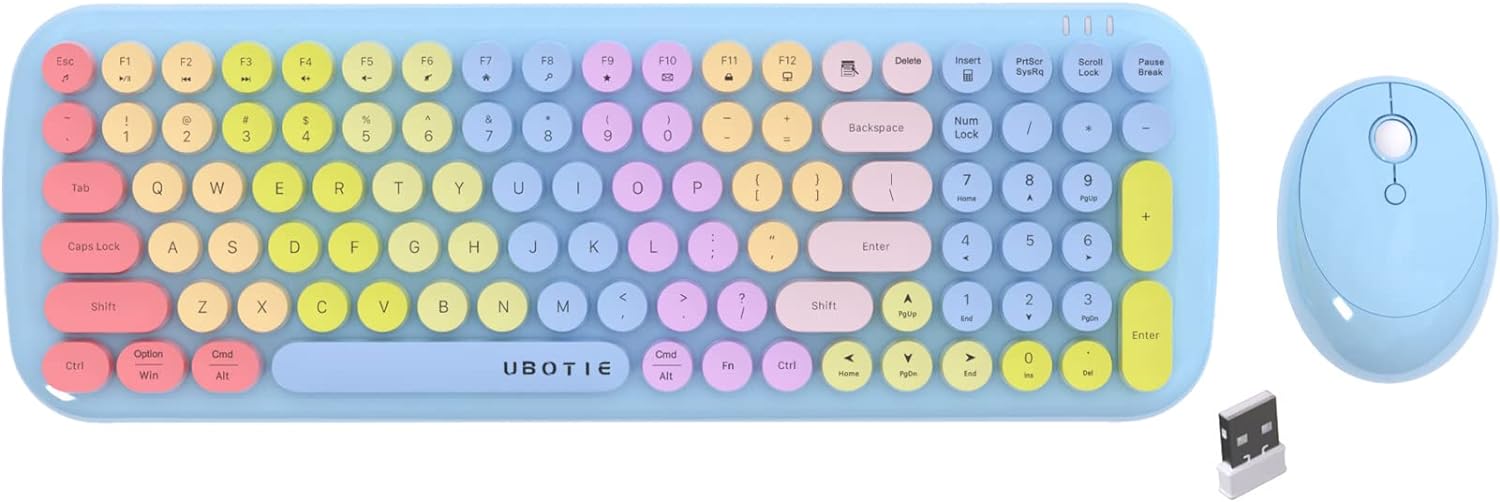 Ubotie Colorful Typewriter Style Wireless Mouse & Keyboard Combo - Rainbow