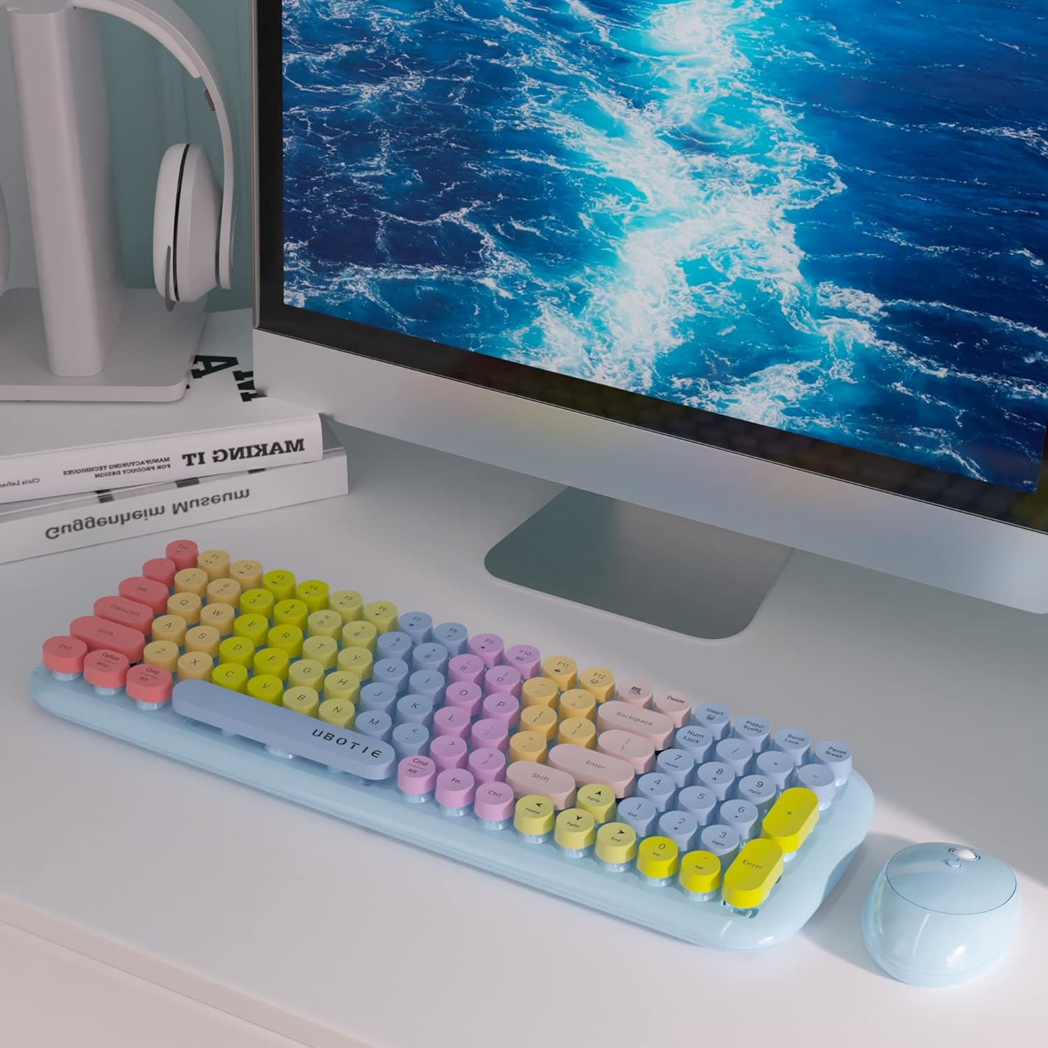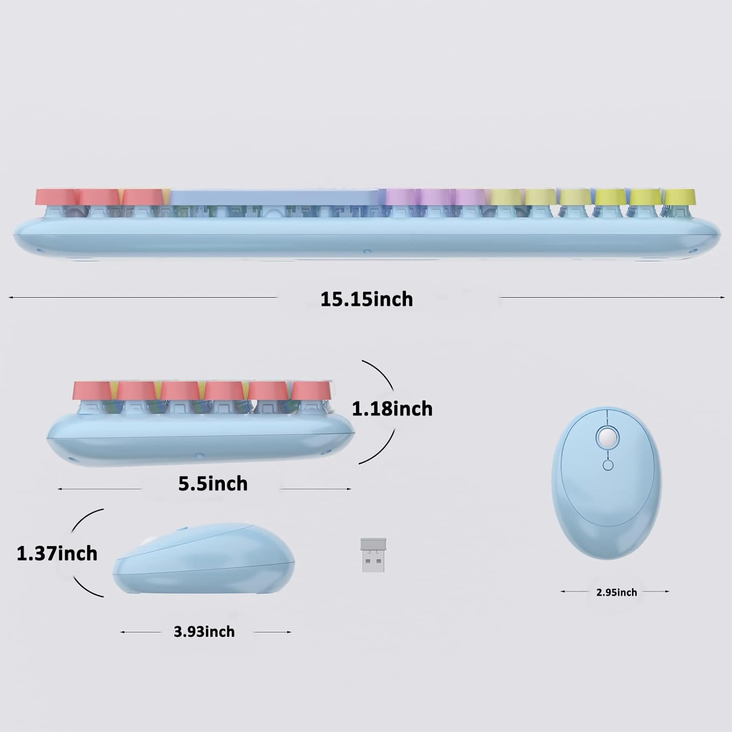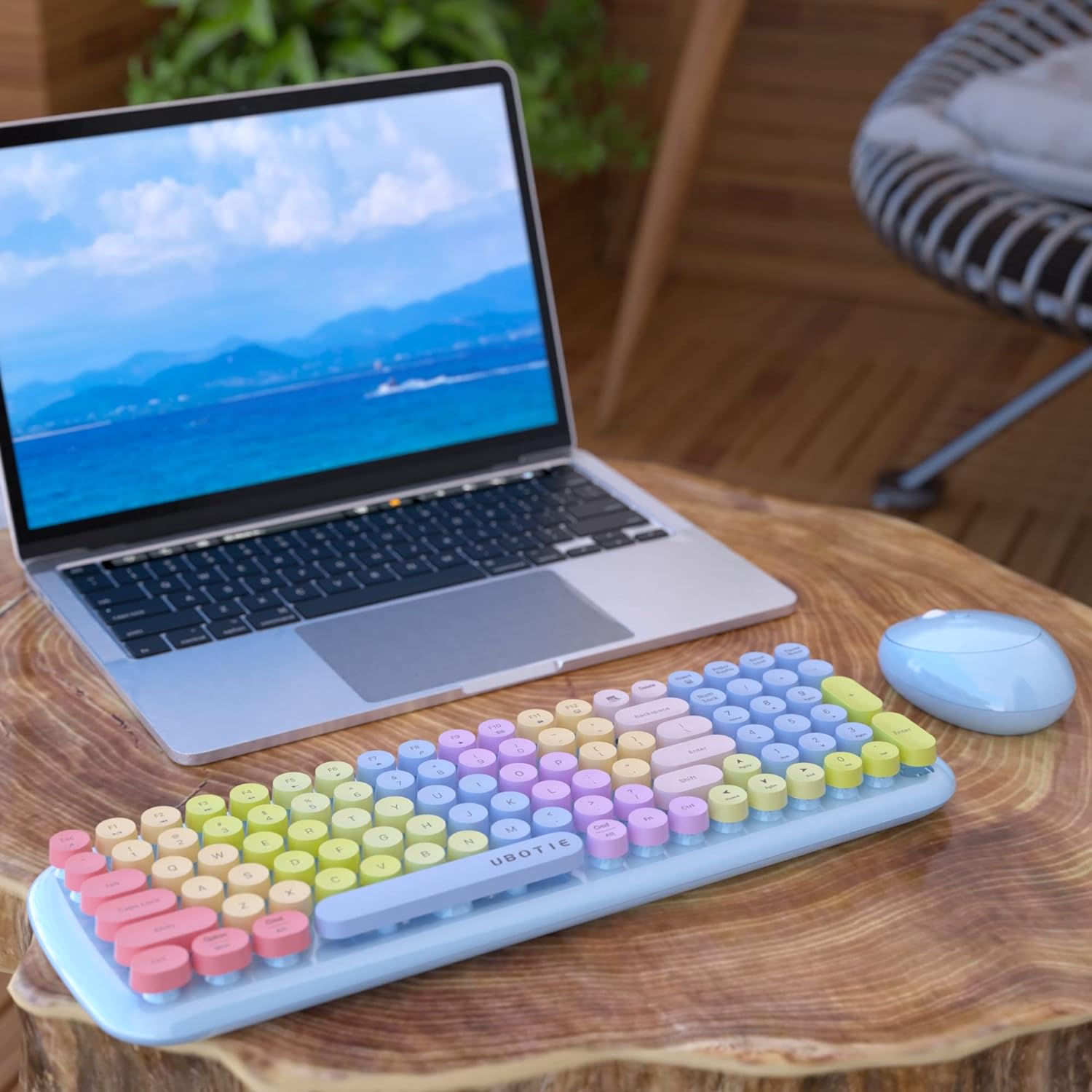 Ubotie Colorful Typewriter Style Wireless Mouse & Keyboard Combo - Rainbow