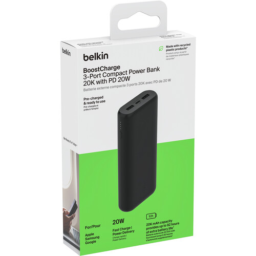Belkin BoostCharge 3-Port Compact Power Bank - 20,000mAh (20W) - Black