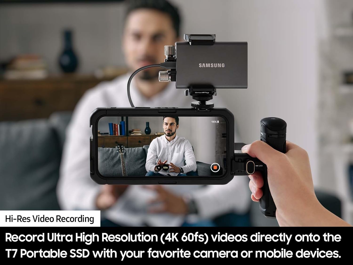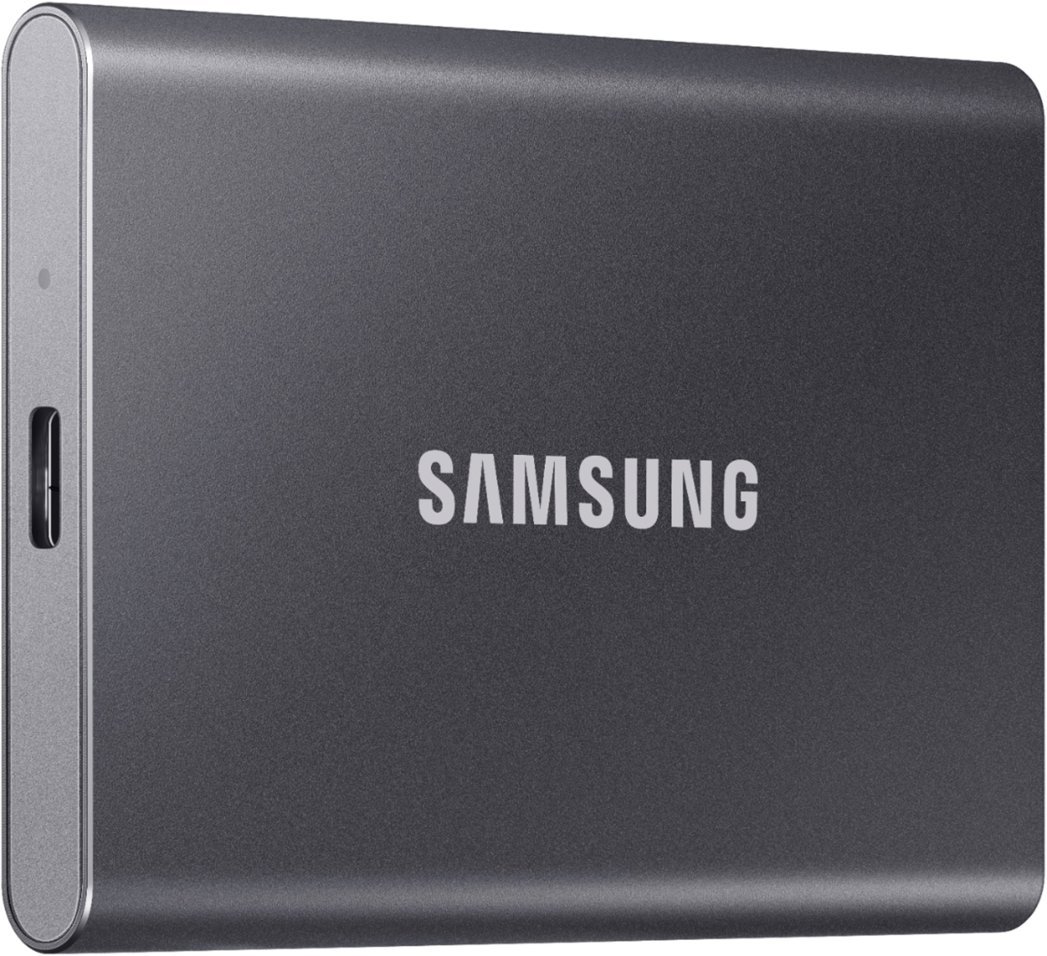 The titan gray Samsung 2TB T7 Portable SSD is a