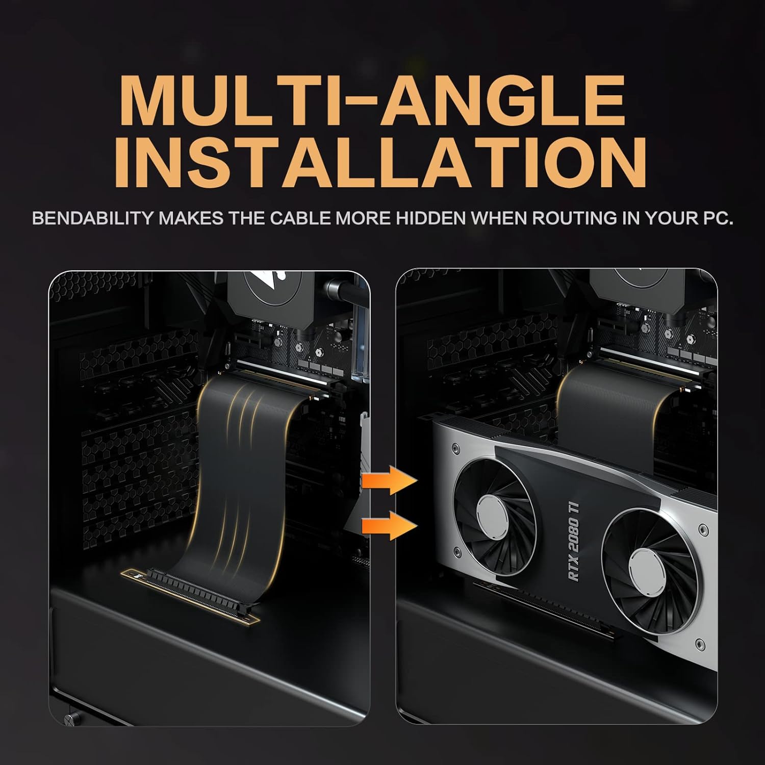 female PCIe connector, making this gpu riser cable minimizes cable stress