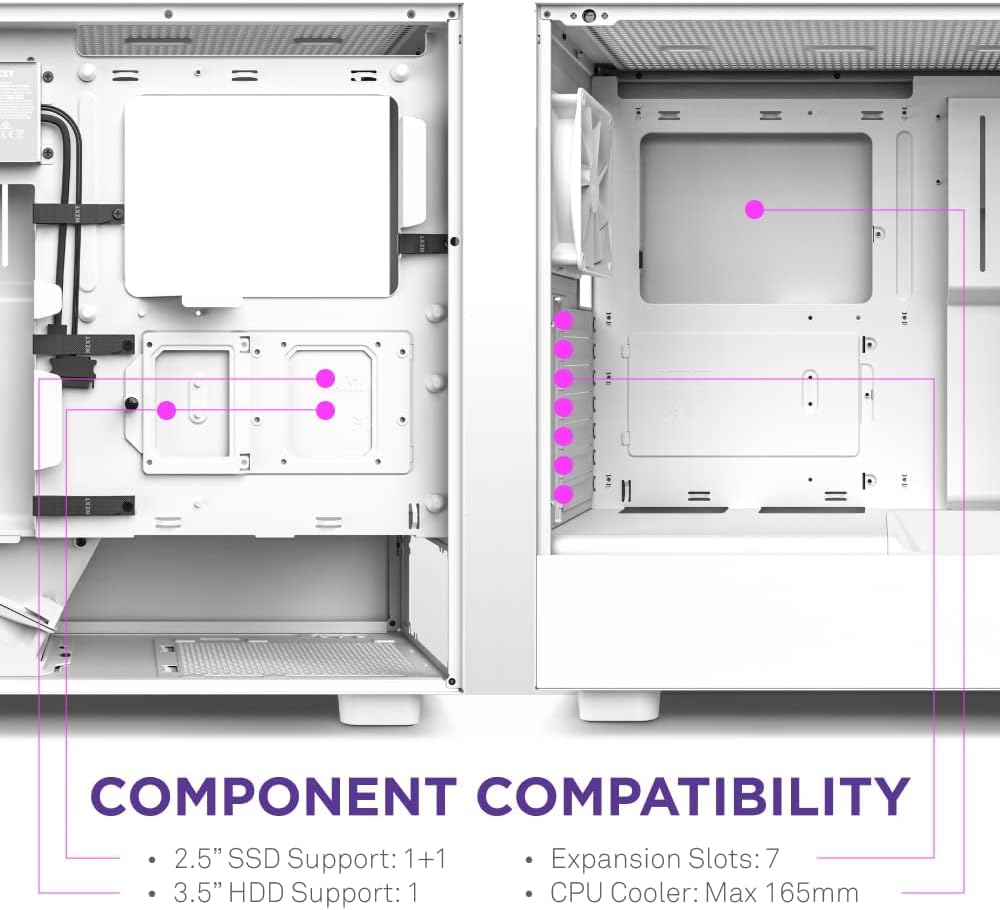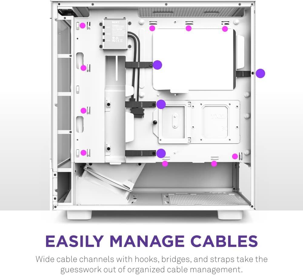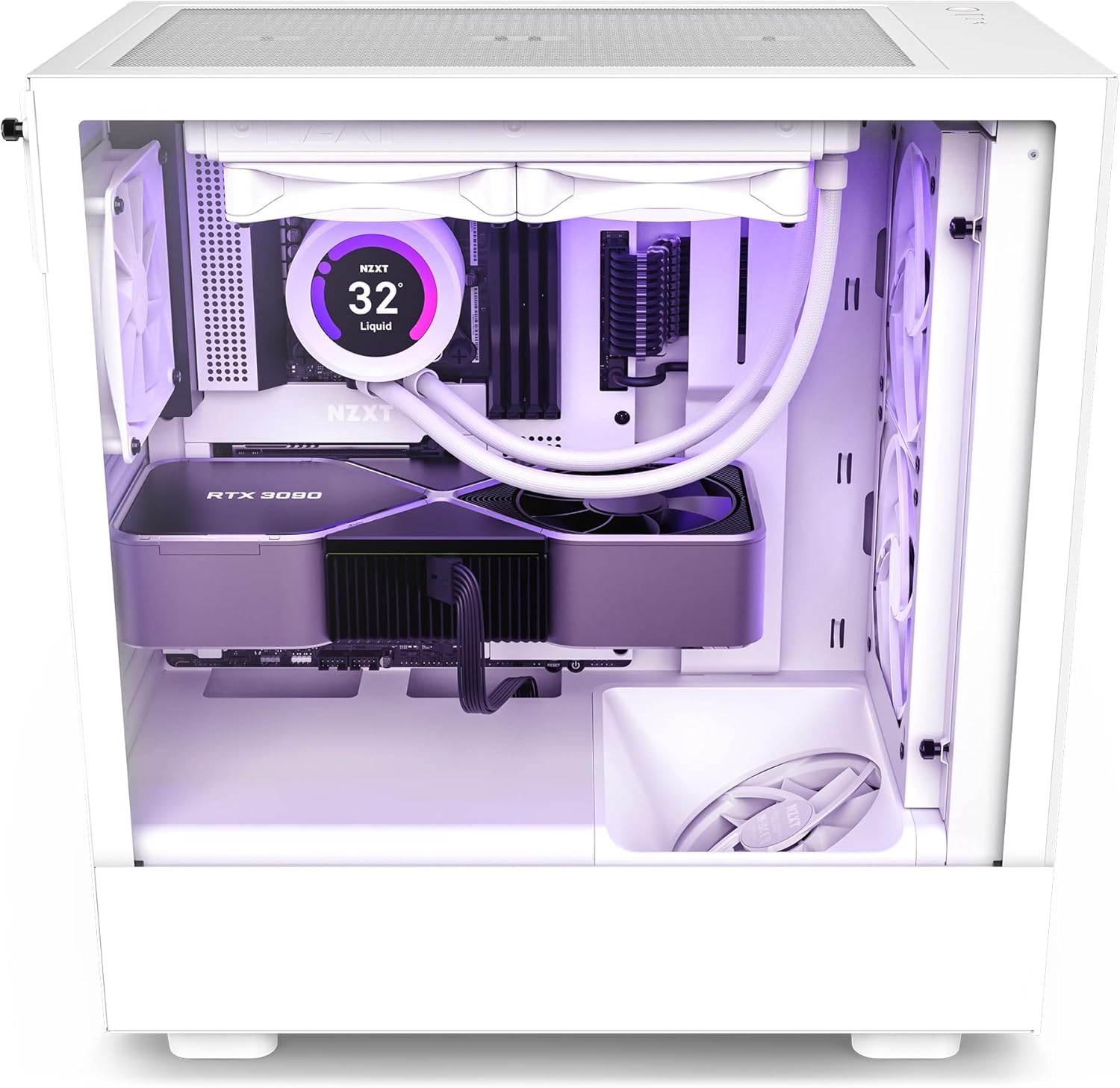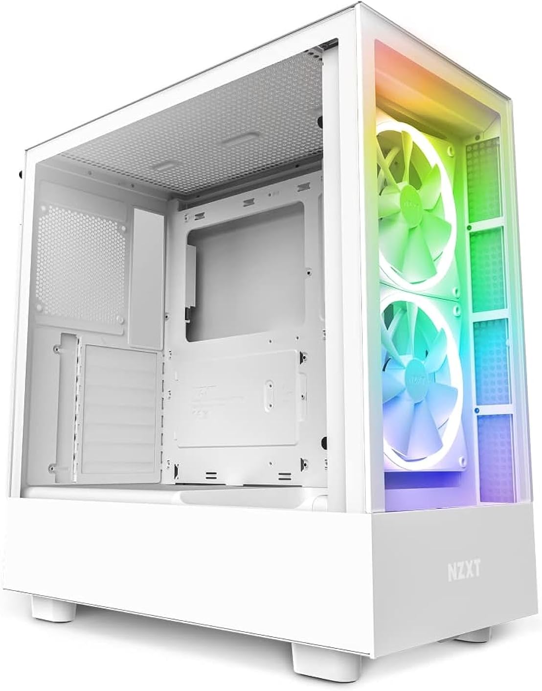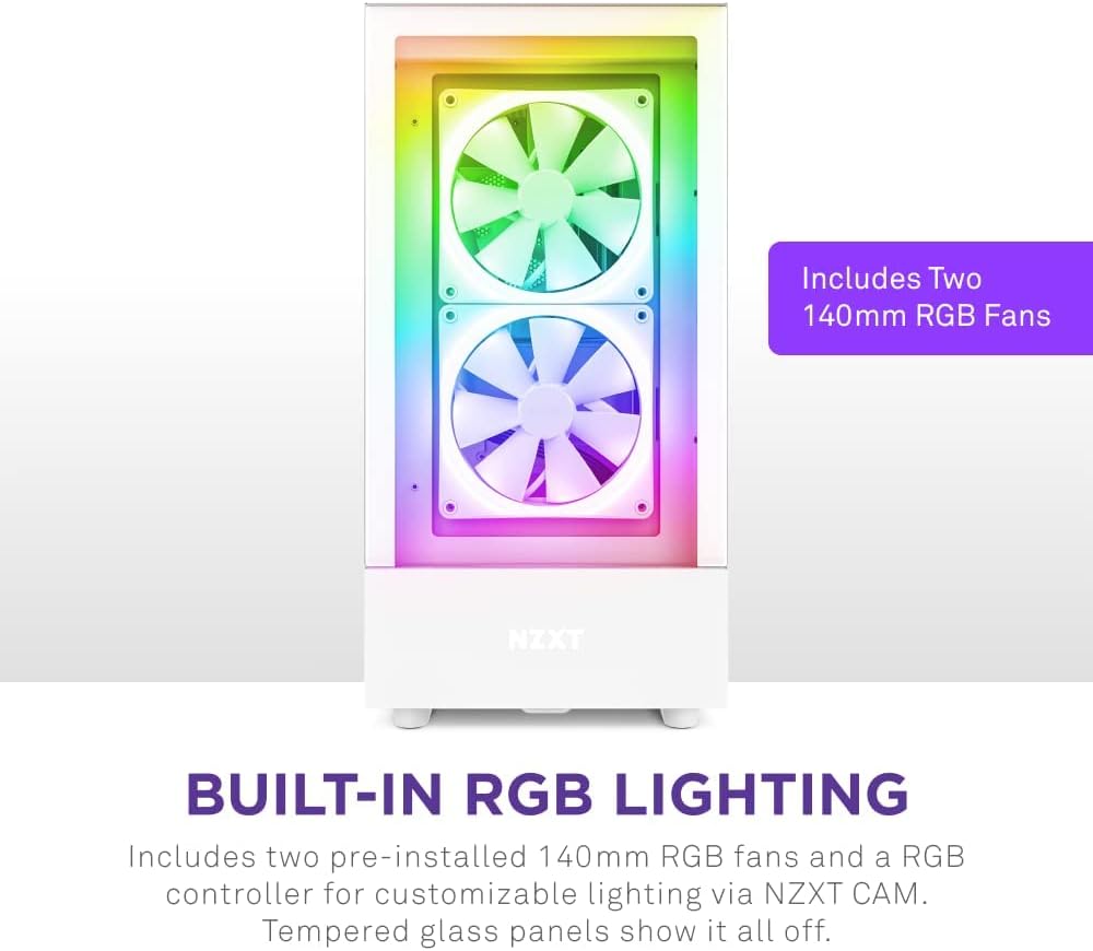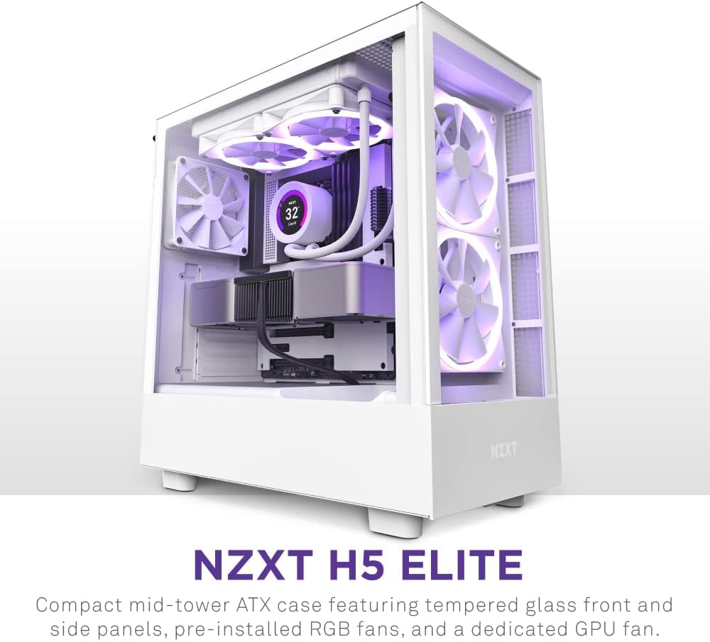 NZXT H5 Elite Compact ATX Mid-Tower PC Gaming Case - Built-in RGB Lighting - Tempered Glass Front and Side Panels (2x140mm RGB Fans Included) - White