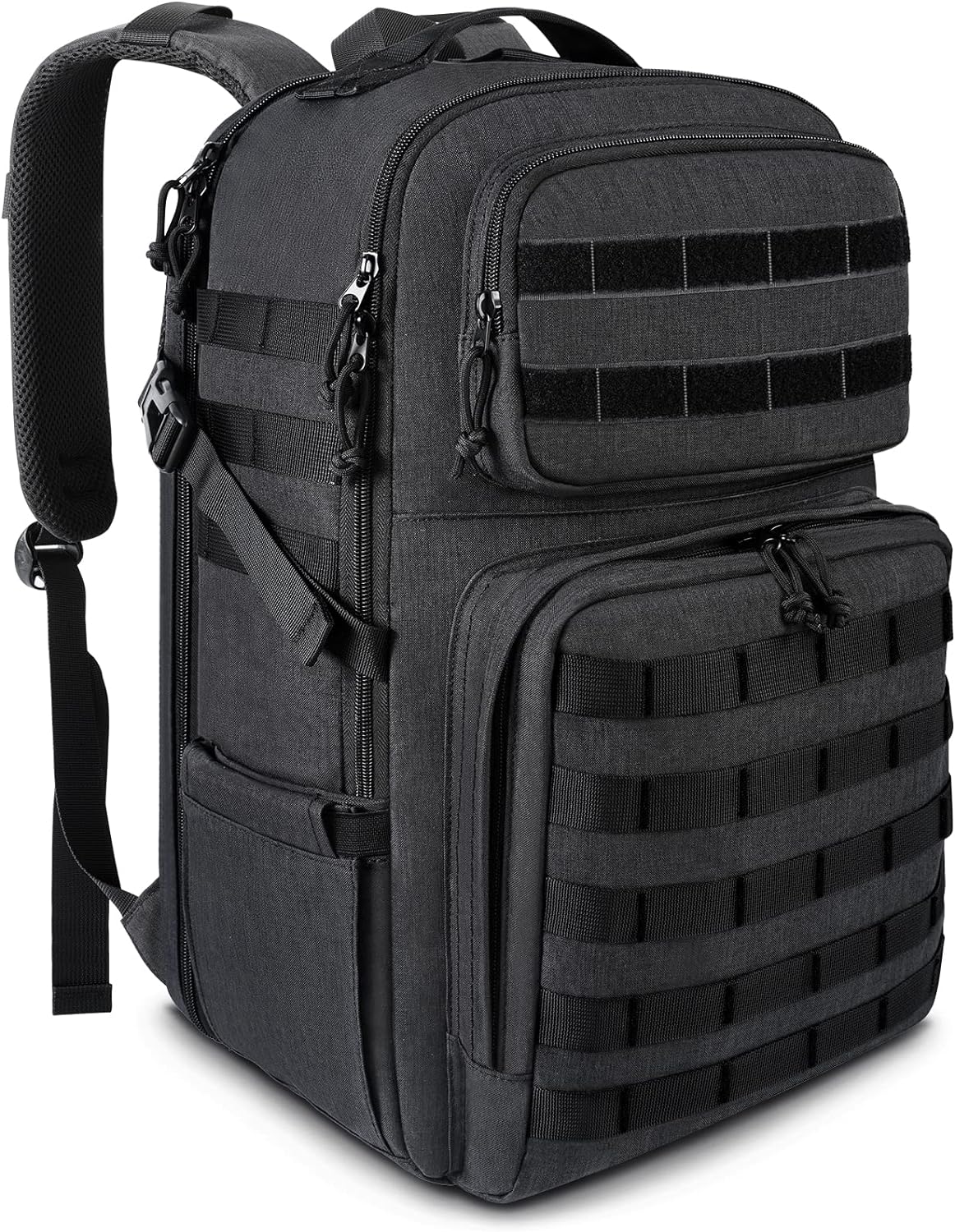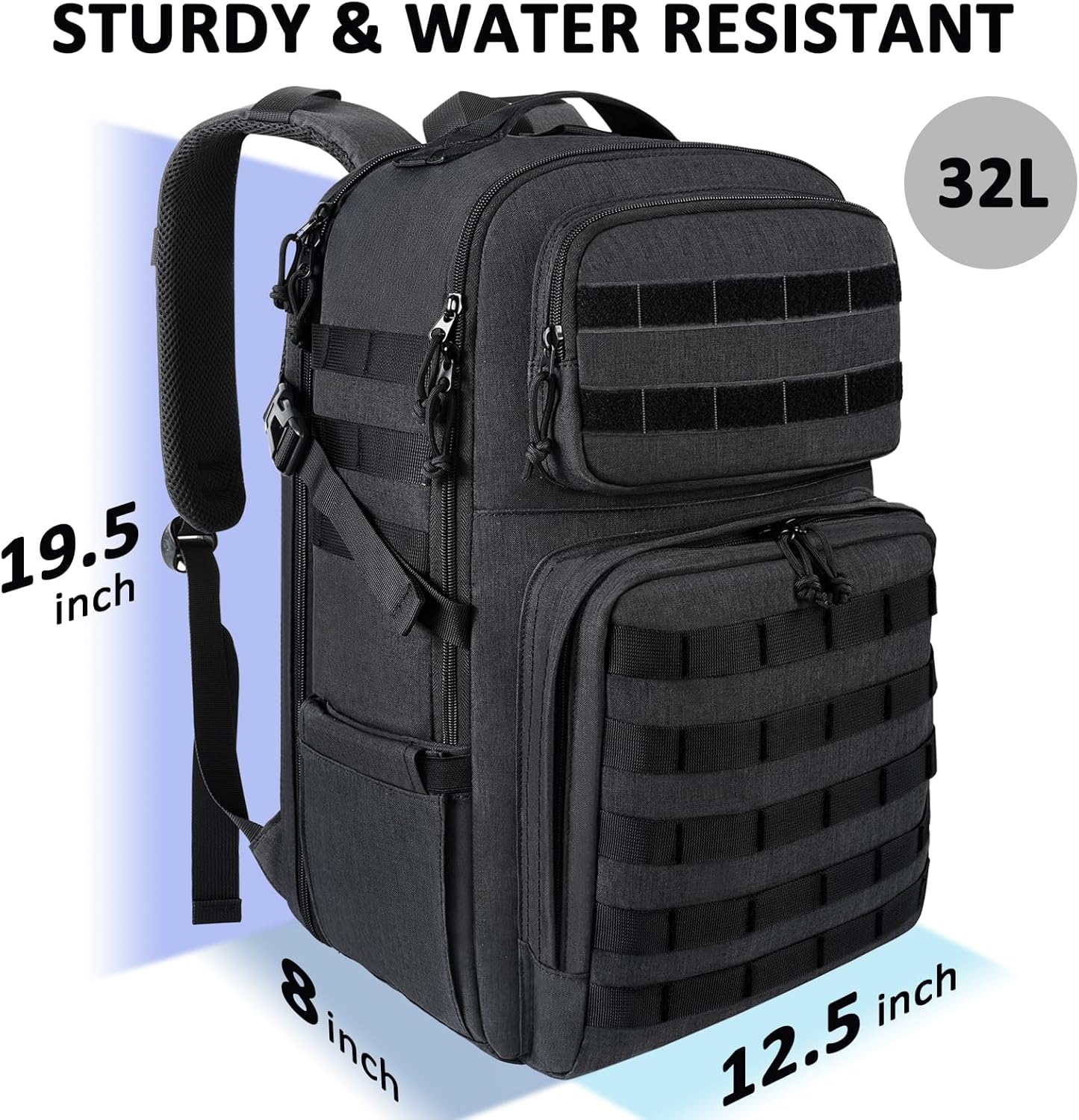 - Molle Design Style: Molle backpack's front and both sides come with Molle webbing, throughout for attaching additional pouches, hooks or other small gadgets. Molle system has been essential for first responders, patrol, soldiers, public service workers. It can be used as outdoor backpack or hiking backpack, etc