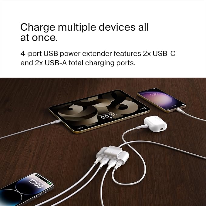 - OPTIMIZED FOR MOST DEVICES: This Belkin USB-C and USB-A charger extension is designed for broad compatibility, optimized for iPhone, Samsung, laptops, tablets, and more so you can enjoy the convenience of a one-charger solution for a variety of devices.