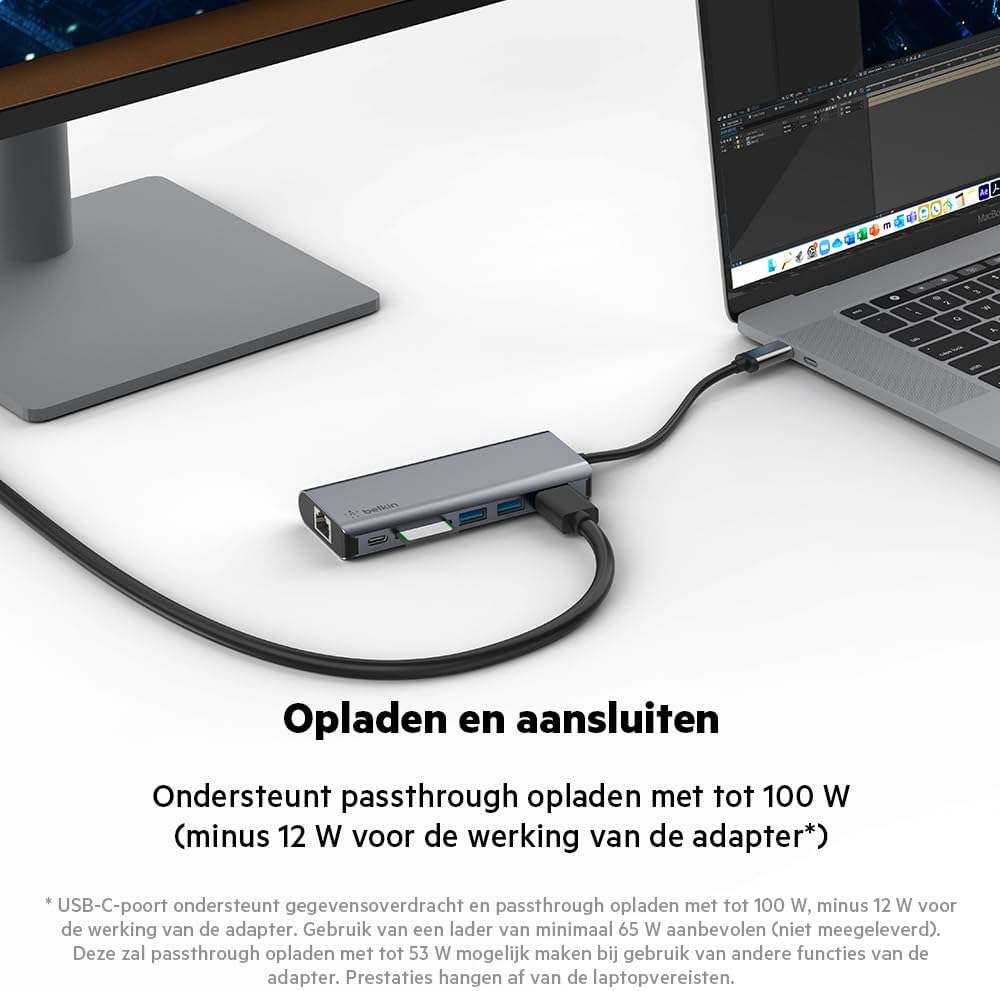 - Supports passthrough charging at up to 100W (minus 12W for dock operation) so you don't have to choose between port expansion and power supply