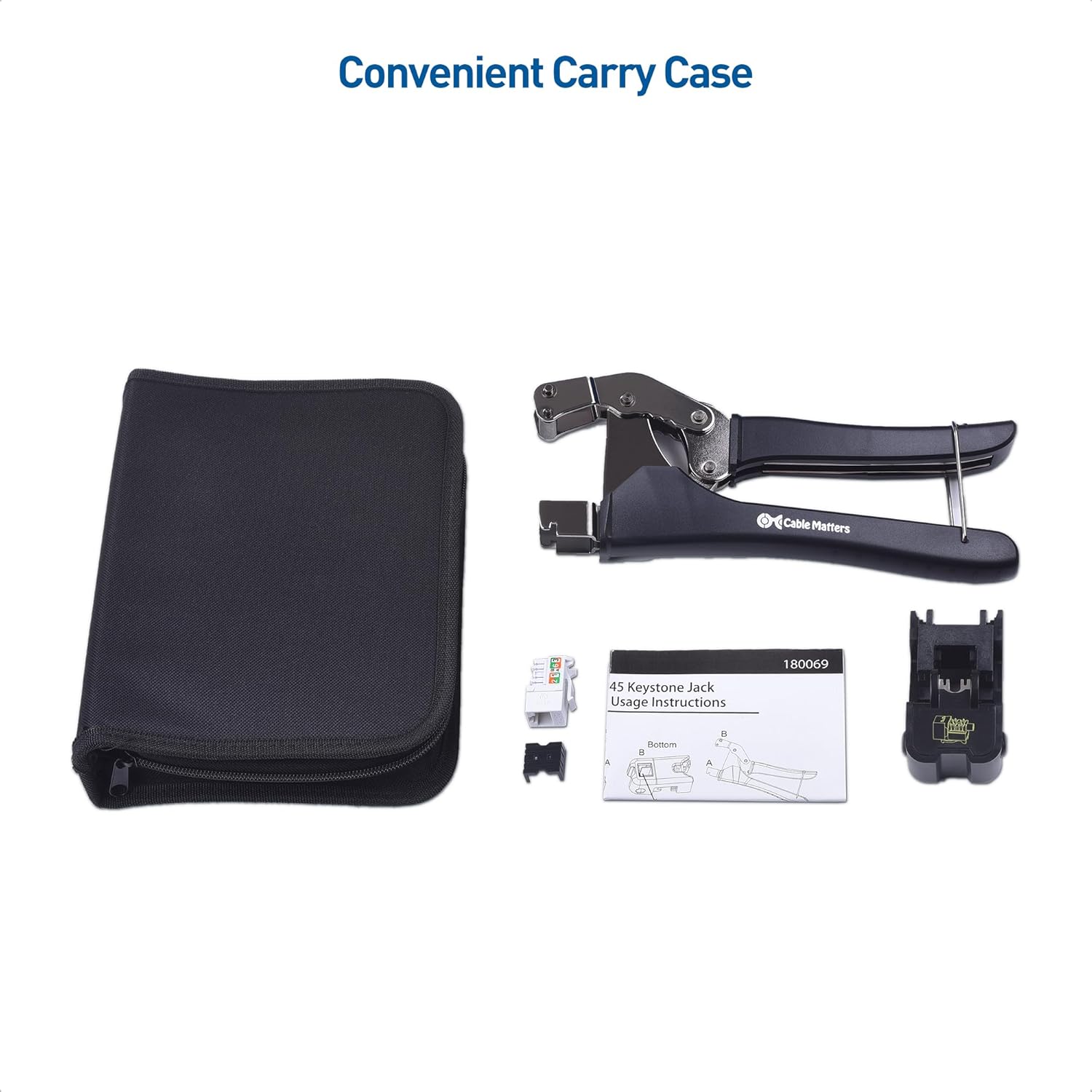 - Convenient tool case stores the crimp tool when not in use; Zippered case includes additional compartments for storing keystone jacks and other small tools