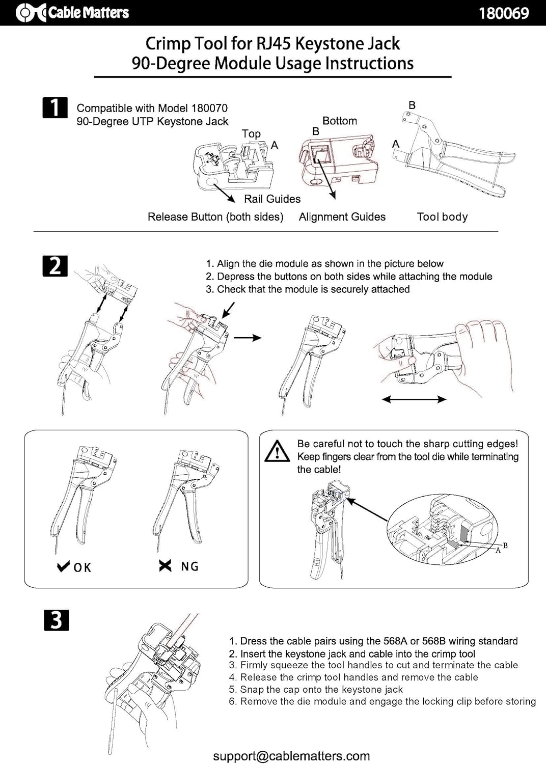 Cable Matters Crimp Tool for Cable Matters Cat 6 90-Degree RJ45 Slim-Profile Keystone Jacks