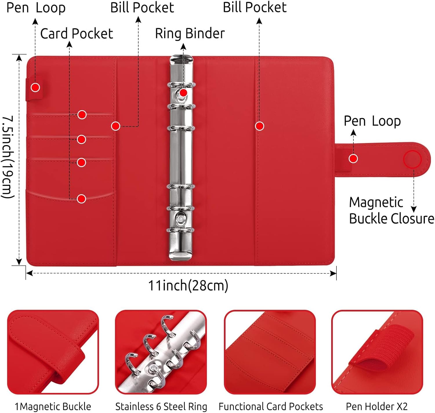 · Easy to Carry: A6 Binder Budget Envelopes System fits in your handbag, backpack,suitcase or desk;A6 ring binder suitable for all standard A6 size inner pages.