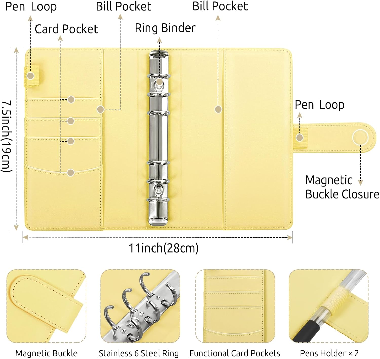 - Save money & Easy to Carry: Save more money and spend less this year with your budget binder & planner with cash stuffing envelopes.A6 Binder Budget Envelopes System fits in your handbag, backpack,suitcase or desk;A6 ring binder suitable for all standard A6 size inner pages.