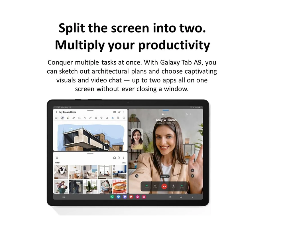 tasks at once. With Galaxy Tab A9, you can sketch out architectural plans and