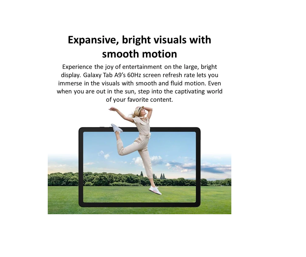 joy of entertainment on the large, bright display. Galaxy Tab A9's high screen