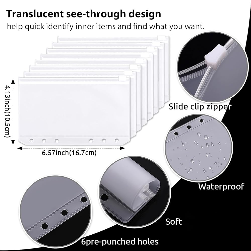 Resistant Envelopes: 8 A6 zipper envelopes made of superior material. It