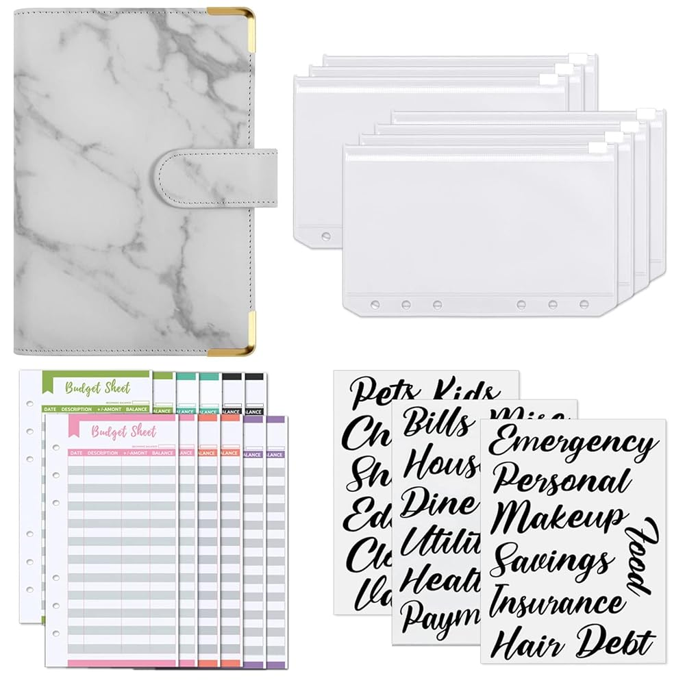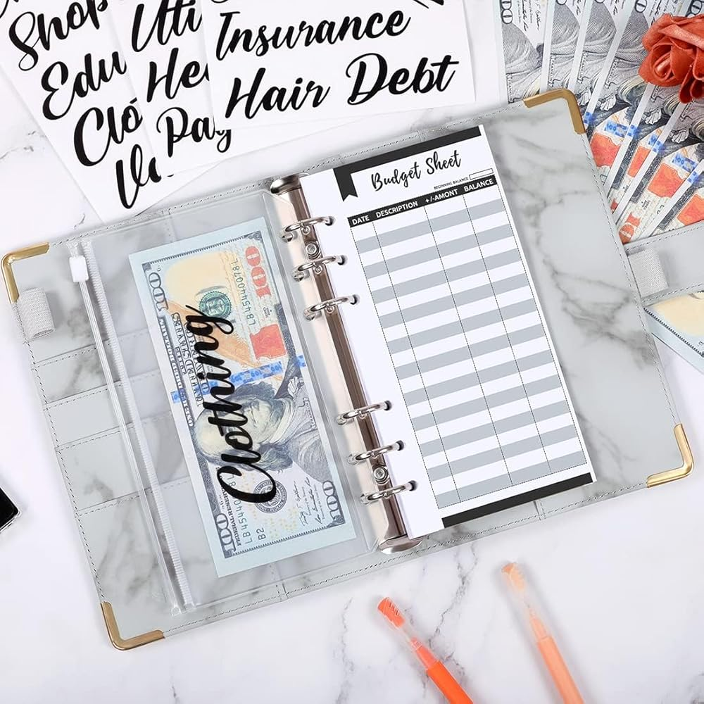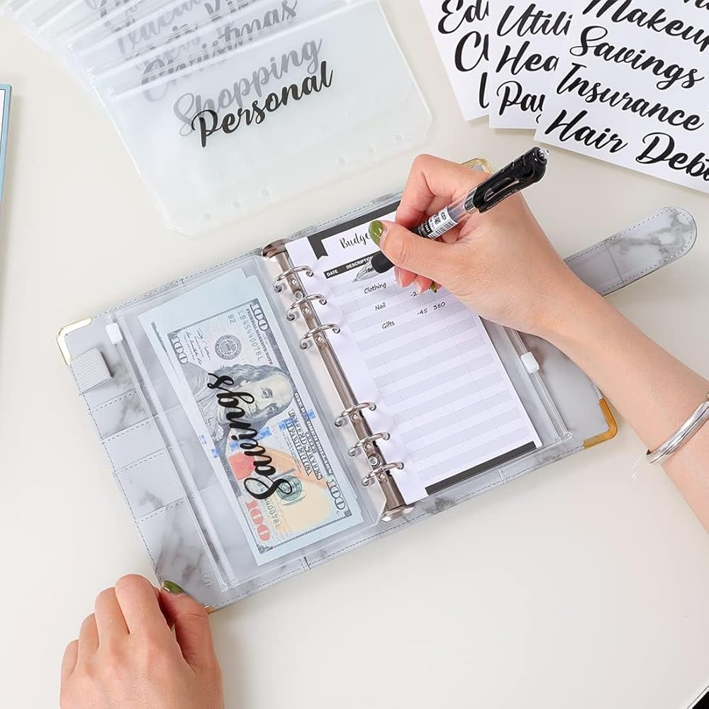 labels. The budget binder with cash envelopes is perfect for saving money. The