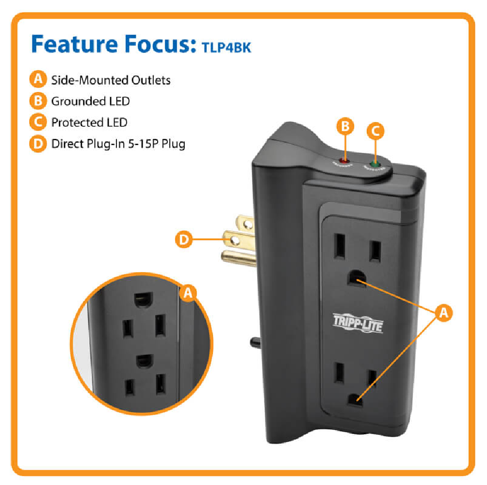 Tripp Lite TRPTLP4BK - Protect It! TLP4BK 4 Outlet Surge Suppressor