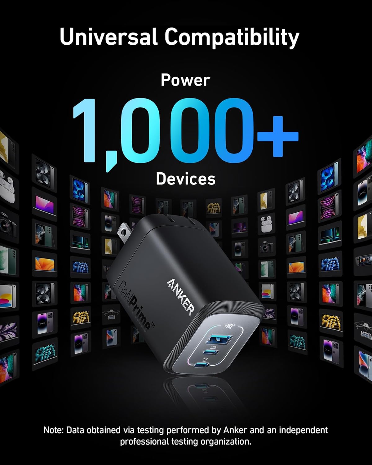 Anker Prime 100W USB C Charger, Anker GaN Wall Charger, 3-Port Compact Fast PPS Charger, for MacBook Pro/Air, Pixelbook, iPad Pro, iPhone 16/Pro, Galaxy S23/S22, Note20, Pixel, Apple Watch, and More