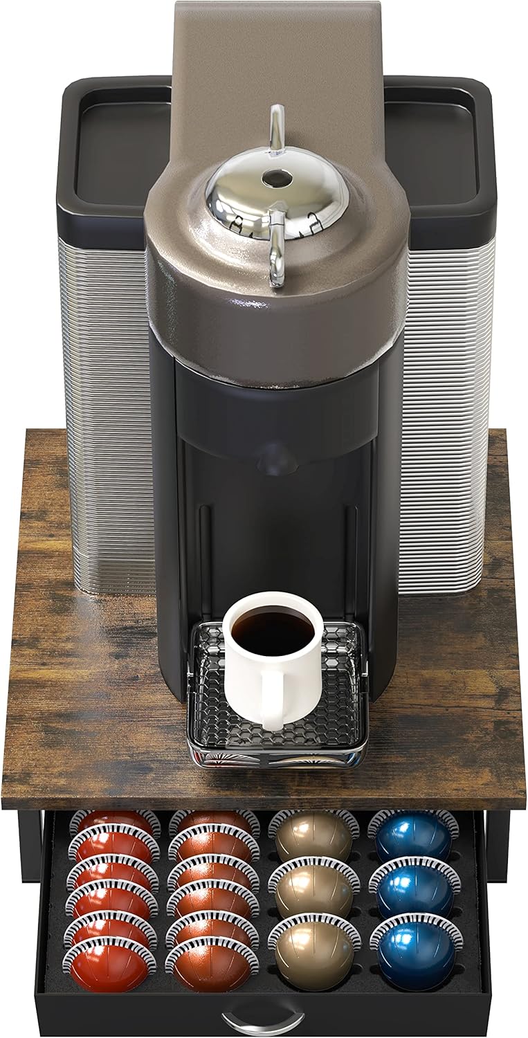 DecoBrothers Vertuo Pod Holder Drawer Nespresso Capsule Organizer -Rustic Brown
