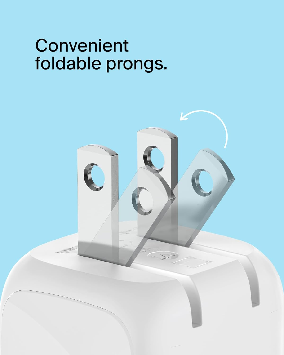 - DURABLE & TRAVEL READY: This Belkin Wall Charger is made with durability in mind and features foldable prongs for a convenient, travel-ready design. Compact and lightweight, it's the perfect charger for home, office, or travel