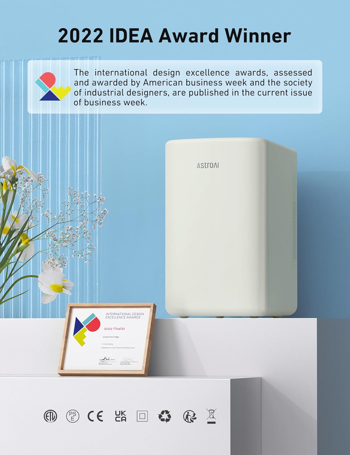 of features, and a low-noise system. The upgraded AstroAI 6L Skincare Fridge is