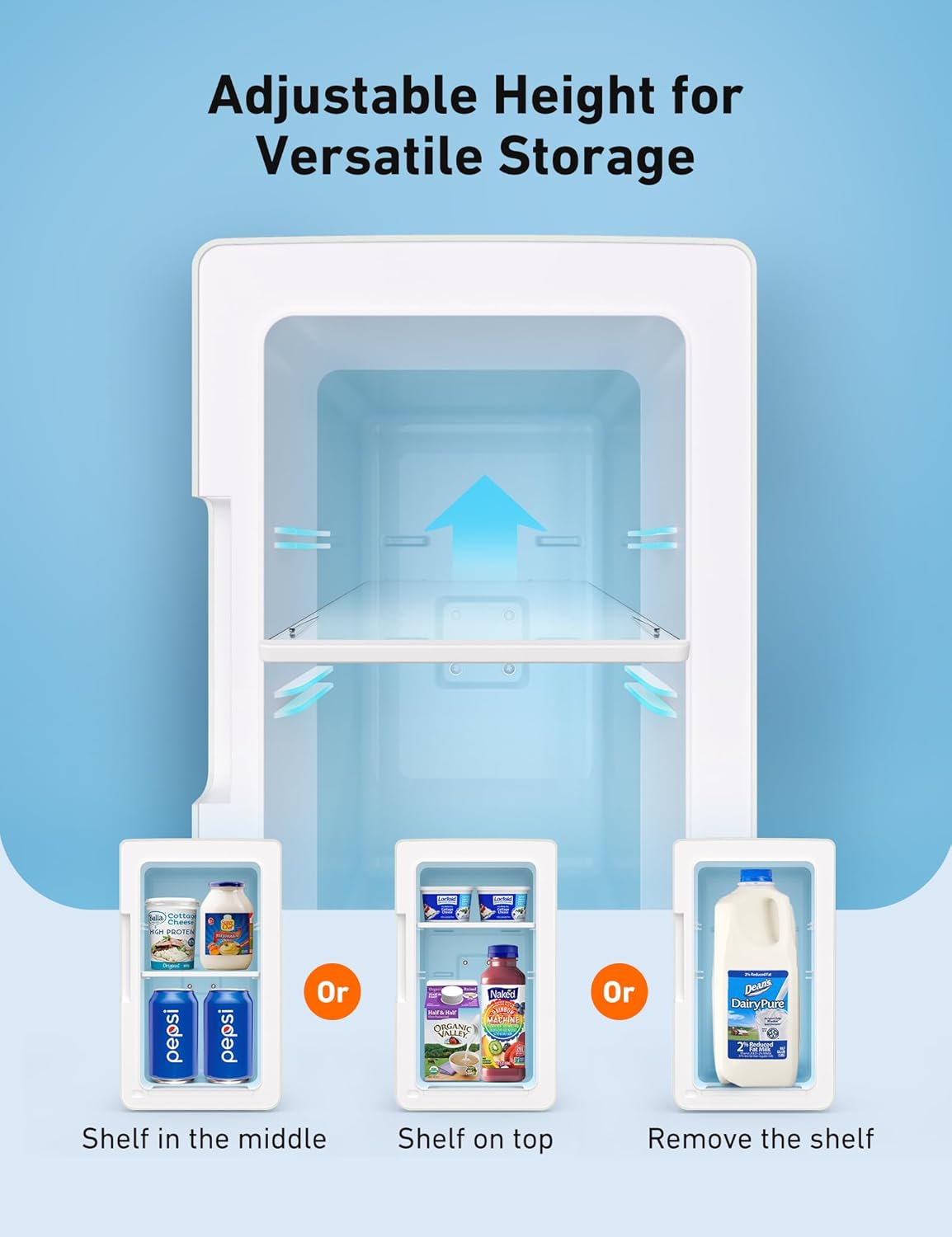 or 4*20oz bottles of water. The detachable shelf lets you easily store