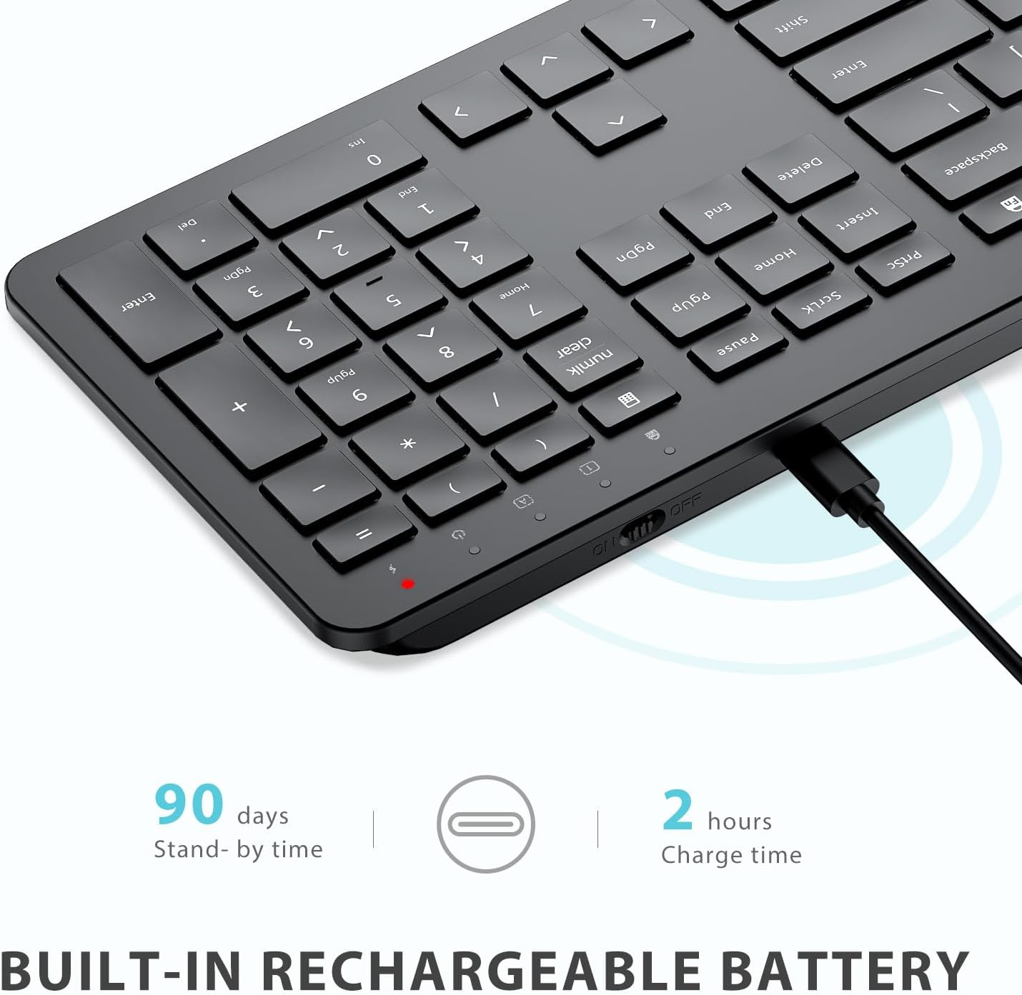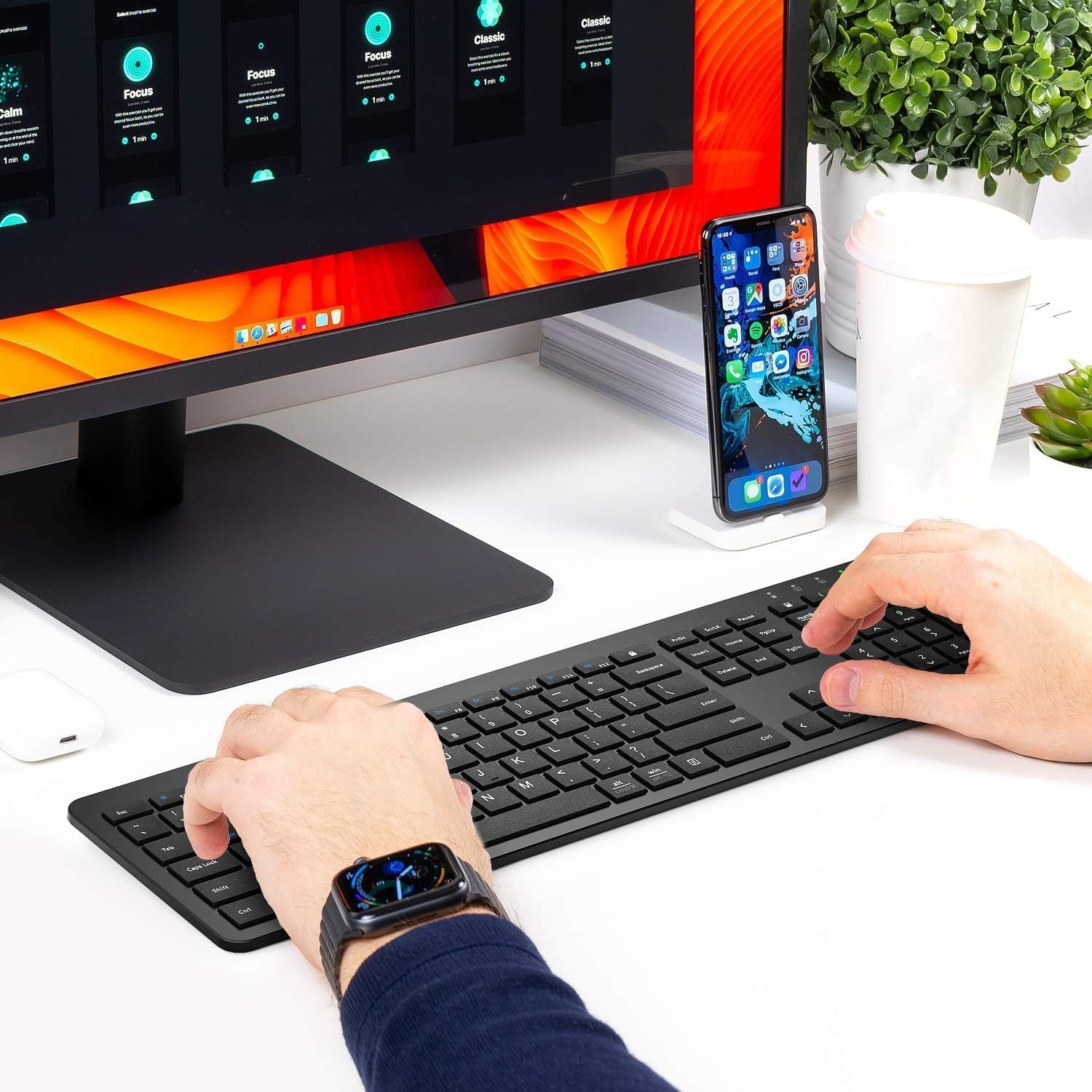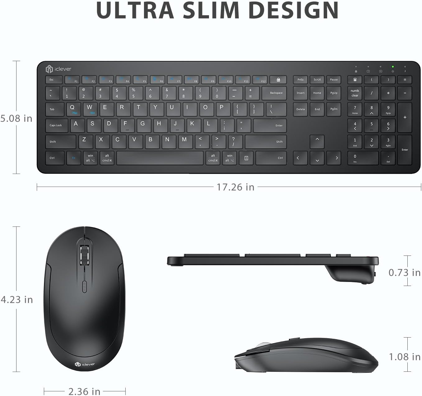 iClever GK08 Wireless Keyboard and Mouse - Ultra Slim Keyboard and Mouse Combo, Full Size Design with Number Pad, 2.4G Stable Connection, for Windows, Mac OS Computer (Black)