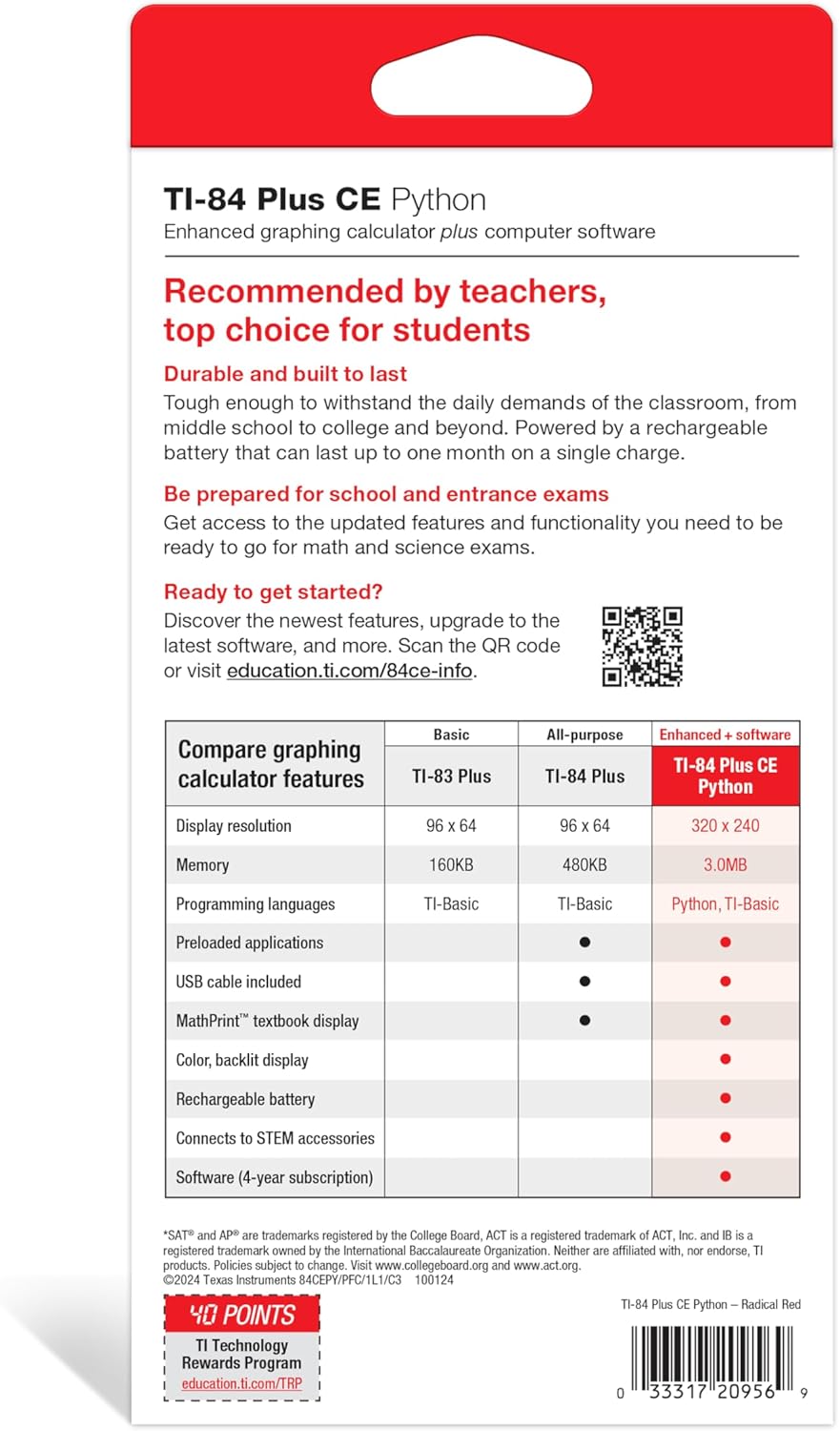 Texas Instruments TI-84 Plus CE Color Graphing Calculator – Red