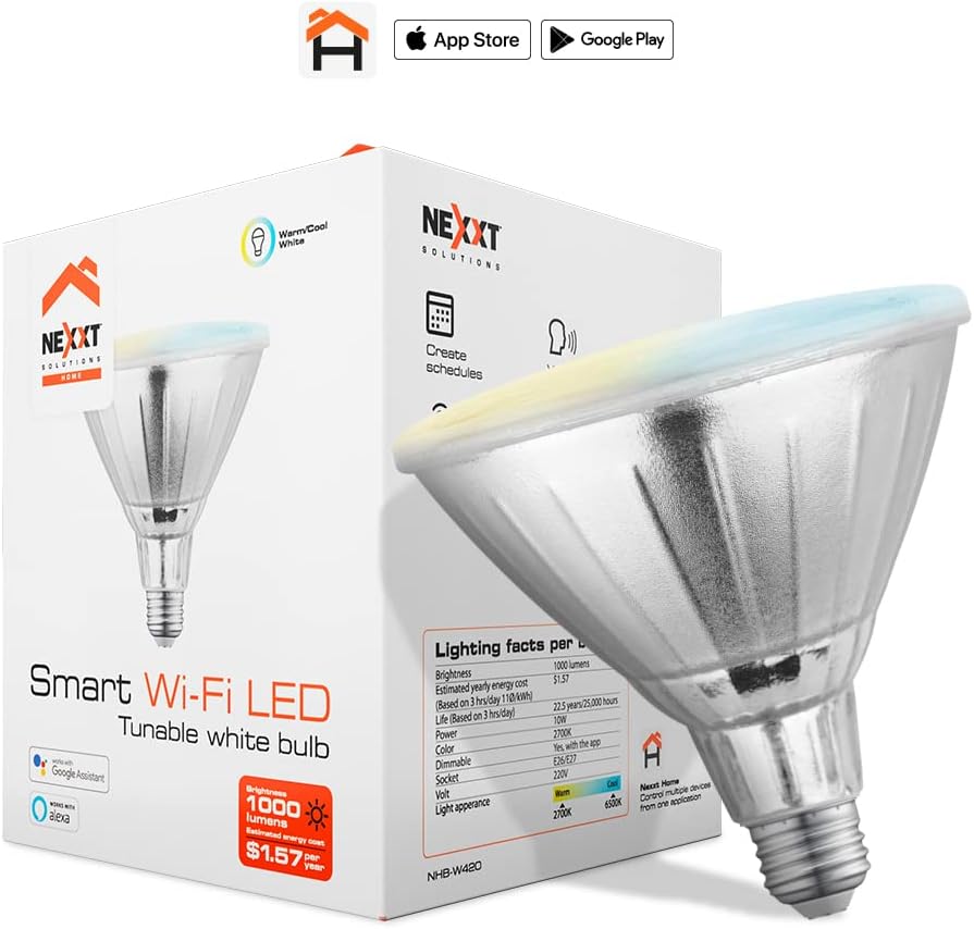 NEXXT Smart WiFi LED Flood Light - 10W Dimmable & Tunable White Light