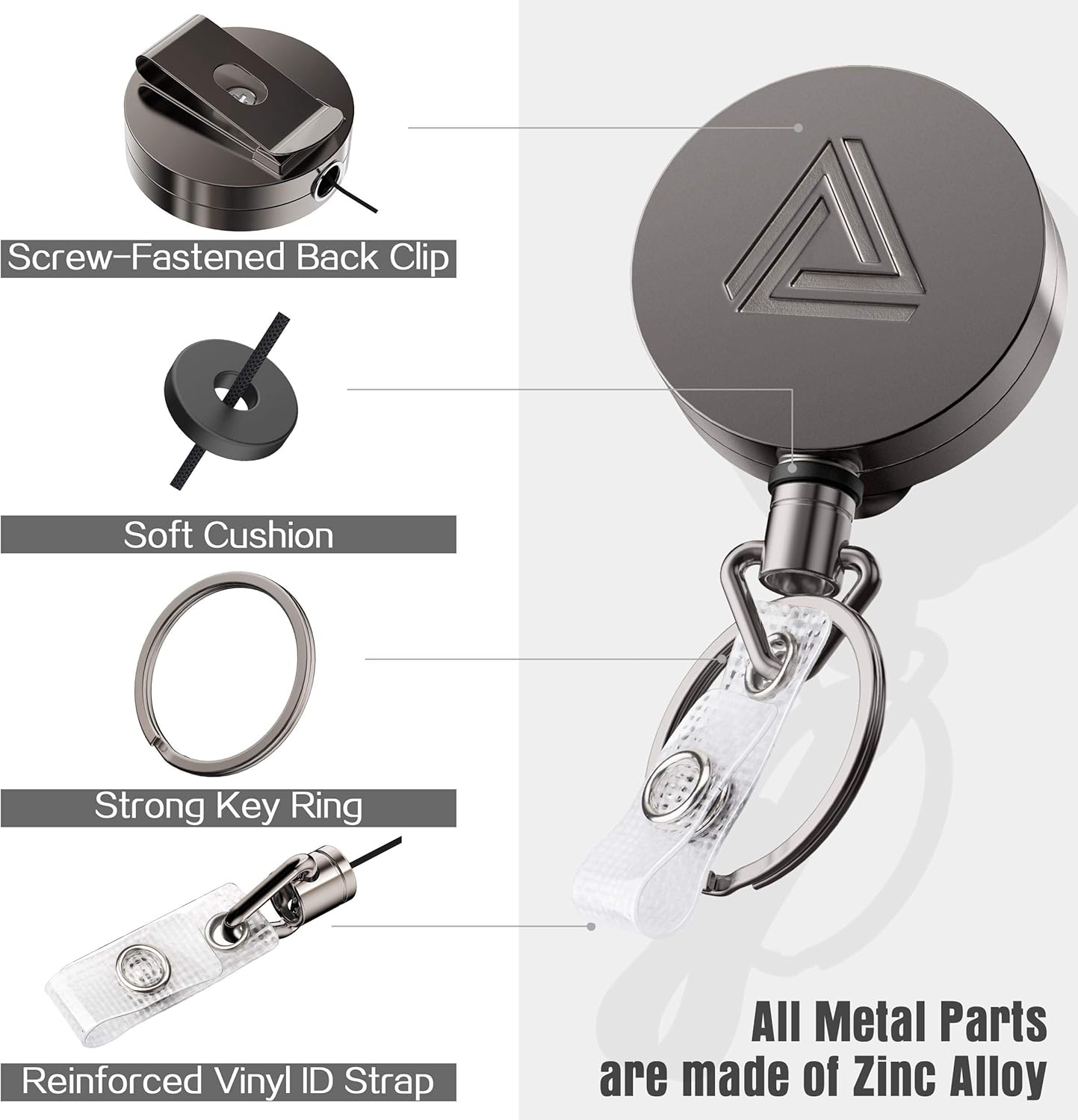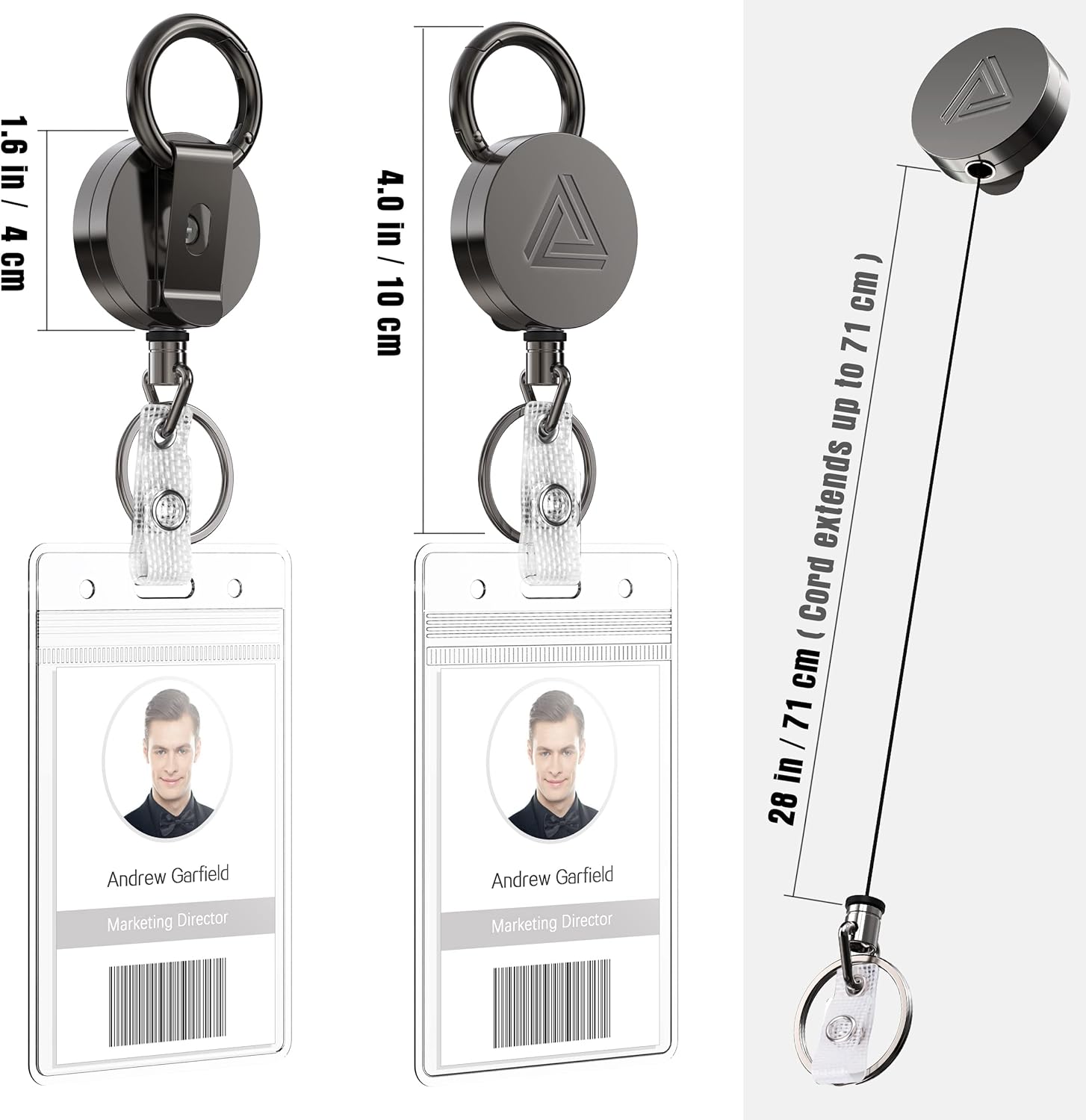 Heavy Duty Metal Retractable Badge Holder Reel w/ Belt Clip Key Ring & Waterproof Vertical Clear ID Holder
