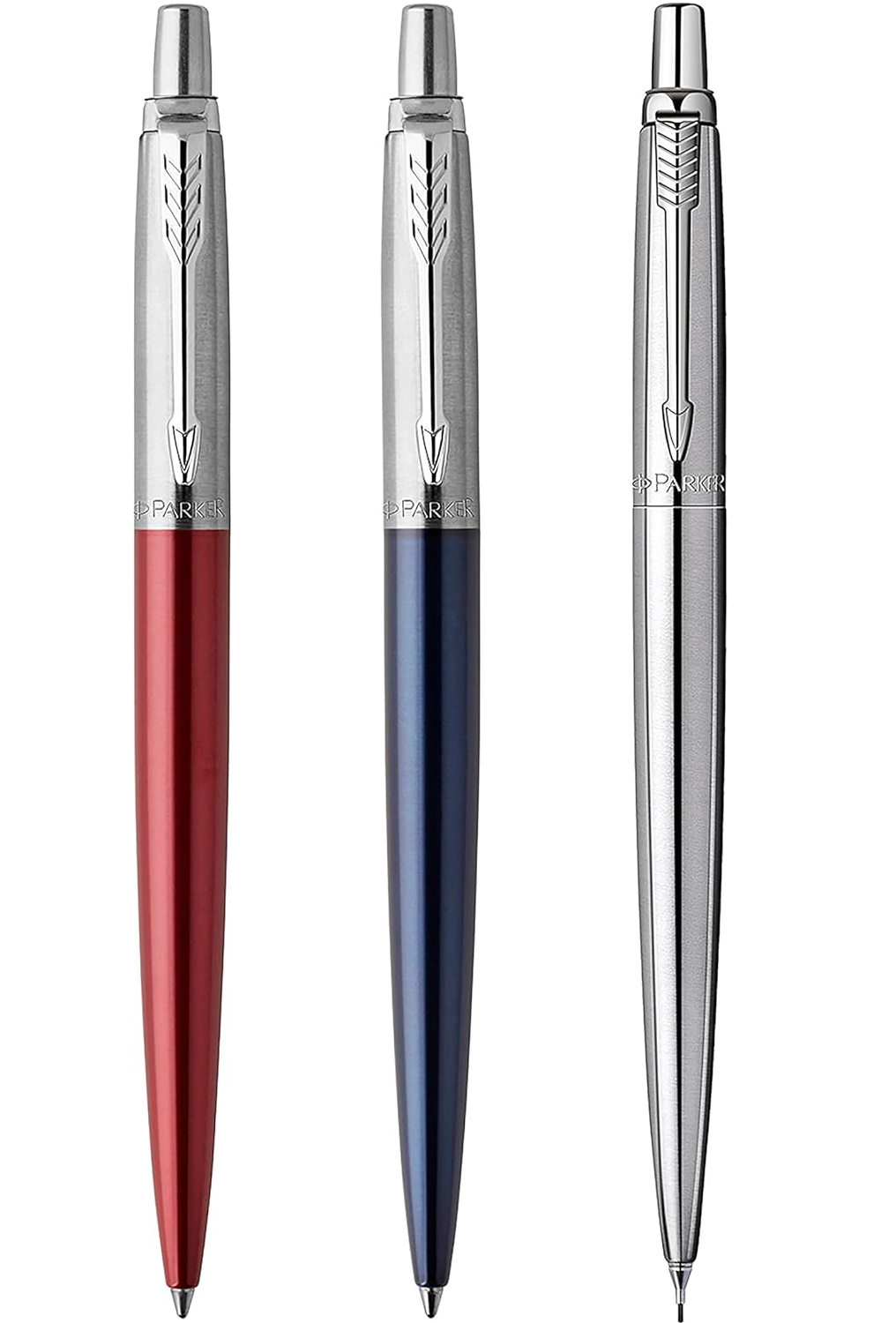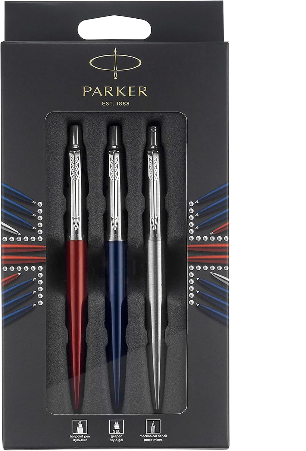 Parker Jotter London Trio Discovery Pack: Ballpoint Pen (Royal Blue) Gel Pen (Red Kensington) & Mechanical Pencil (Stainless Steel)