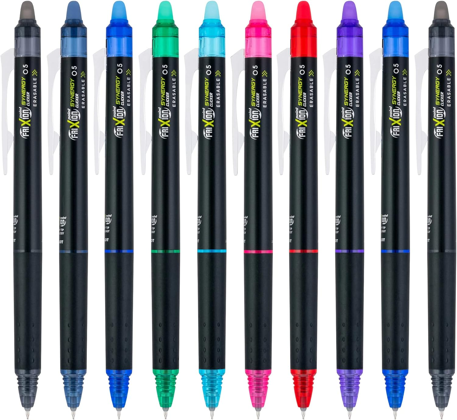 Pilot, FriXion Synergy Clicker Erasable, Refillable, Retractable Gel Ink Pens, Extra Fine Point 0.5 mm, Pack of 10, Assorted Colors