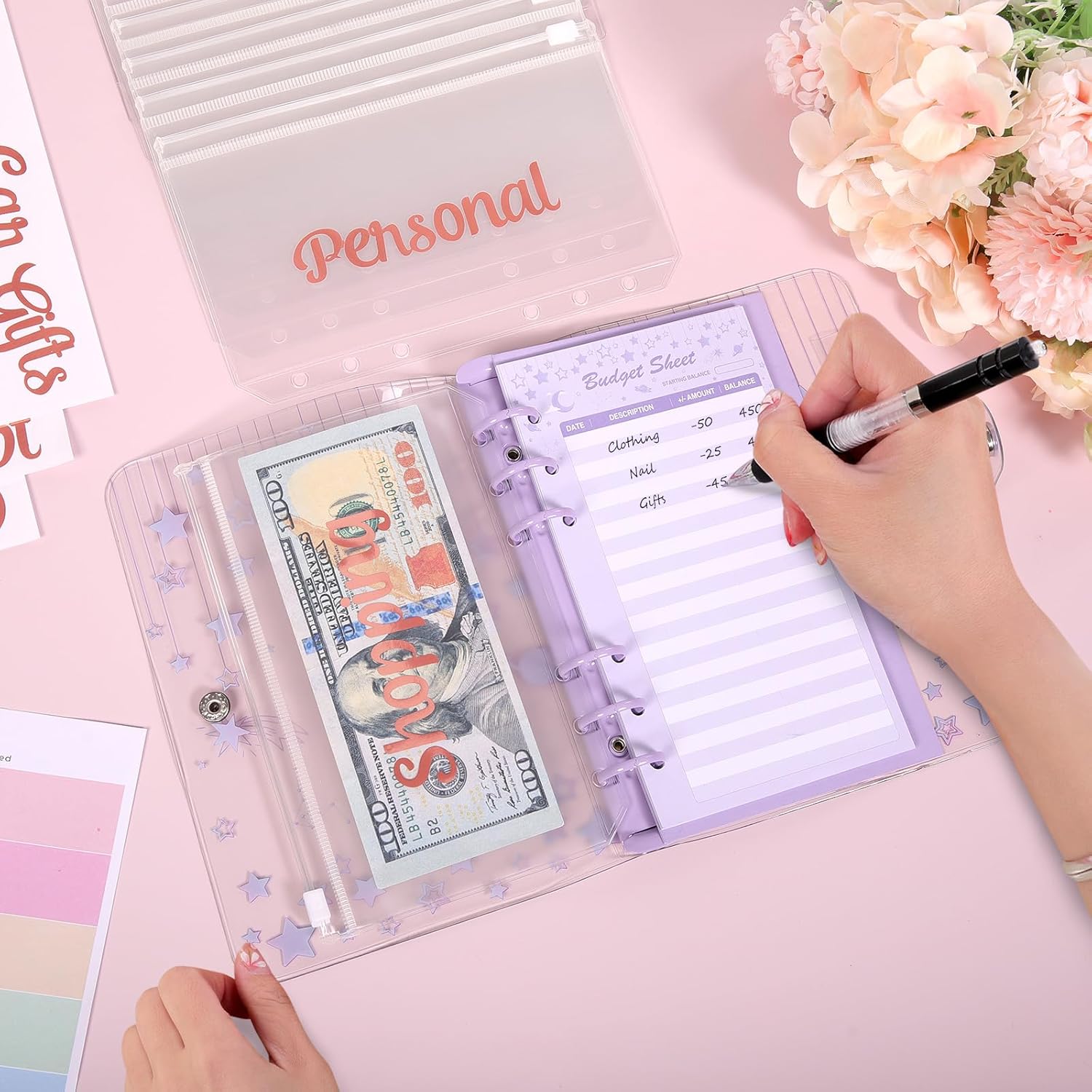 · Category Stickers & Budget Sheet: Money binder with category stickers and budget sheets can help you organize your expenses and track your deposits and withdrawals and achieve budget goals.